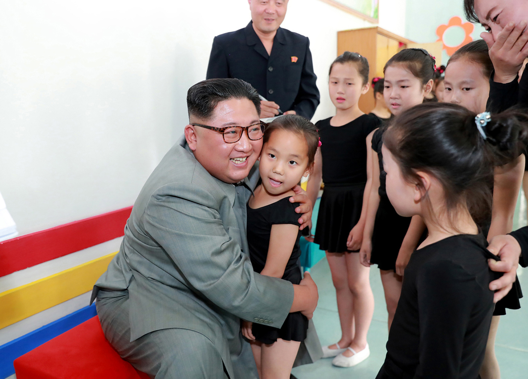 Когда Ким Чен Ын посетил Кёнсанский детсад во второй раз, он зашел и в физкультурный зал.