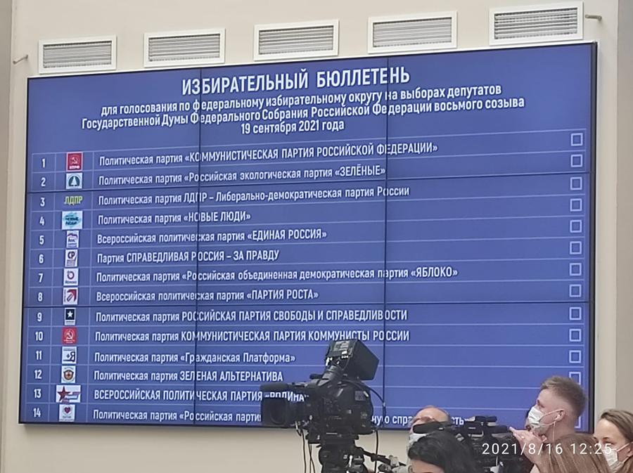 16 августа в Центральной избирательной комиссии России прошла жеребьевка мест в избирательном бюллетене для голосования за партийные списки на выборах депутатов Государственной Думы, предстоящих 19 сентября 2021 года. От КПРФ в жеребьевке приняли участие первый заместитель Председателя ЦК КПРФ Ю.В. Афонин, депутат Госдумы А.А. Ющенко, советник Руководителя фракции КПРФ в Госдуме Г.А. Зюганова по юридическим вопросам И А. Филатова, ряд кандидатов в депутаты Госдумы.