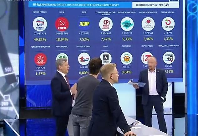 Ведущий Артём Шейнин заявил, что в этом нет ничего необычного и Дальний Восток всегда давал коммунистам больше голосов. «Но именно это и вызывает вопросы к тем, кто модерирует избирательную кампанию! За счёт чего, с какой стали результаты могут так различаться?», – парировал Дмитрий Георгиевич.