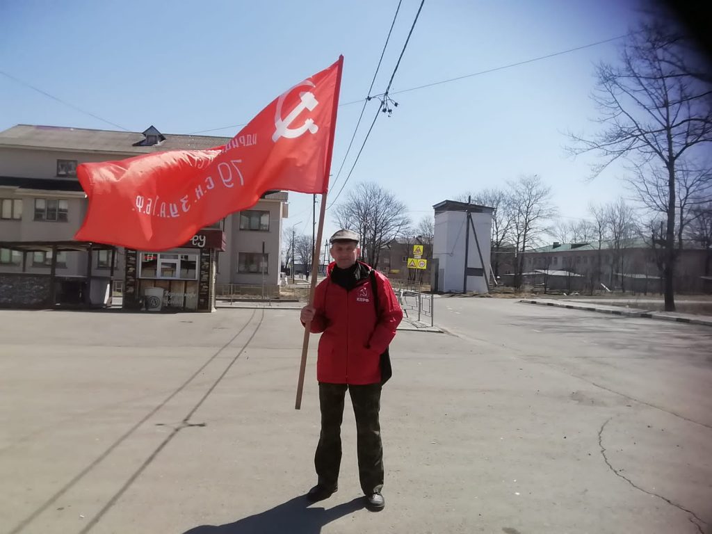 В Макарове коммунисты пронесли Красное Знамя по улицам города, что бы напомнить гражданам о когда-то великолепно проводимом в СССР весеннем торжестве, празднике – Мира, Труда, Мая!