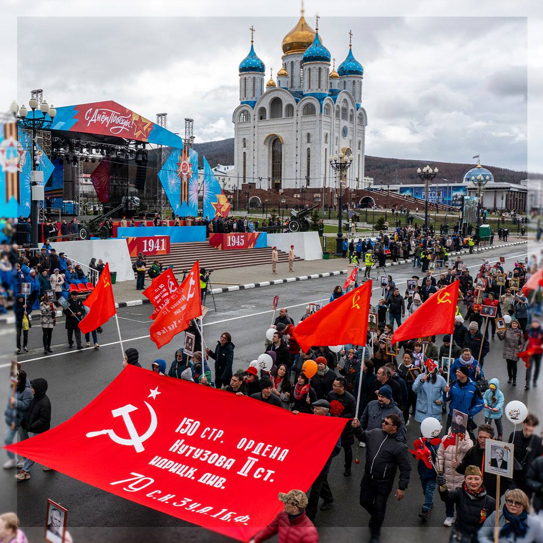 В г. Южно-Сахалинск прошел торжественный парад празднования 77-й годовщины Дня Победы в Великой Отечественной Войне, на мероприятии присутствовали секретарь областного Комитета Вячеслав Ким, первый секретарь областного Комитета ЛКСМ Павел Соловов, члены КПРФ, ЛКСМ и сторонники в большом количестве приняли участие в шествии «Бессмертного полка», возложении цветов к Вечному огню мемориального комплекса на площади Славы. Организованна фотозона с флагом Победы, на фоне которого фотографировались ветераны, офицеры, дети и все желающие.
