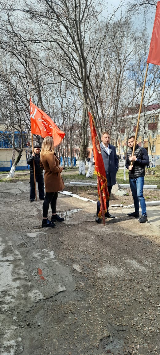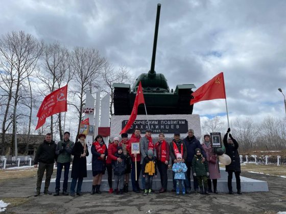 В п. Тымовское в 77 День Победы советского народа в Великой Отечественной войне первый секретарь Тымовского местного отделения Васильев Артем с коммунистами, членами ЛКСМ и жителями района прошли по главной улице п. Тымовское от центральной площади имени Ленина, до монумента войнам-Тымовчанам павшим в годы Великой Отечественной войны 1941-1945г. С возложением цветов дедам и прадедам, бабушкам и пробабушкам – освободителям нашей родины.