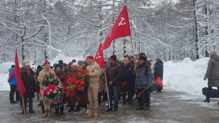Коммунисты Поронайского местного отделения КПРФ во главе с первым секретарем местного отделения Верным Кирилл приняли участие в шествии «Бессмертного полка», возложили цветы к мемориальному комплексу в с. Леонидово.