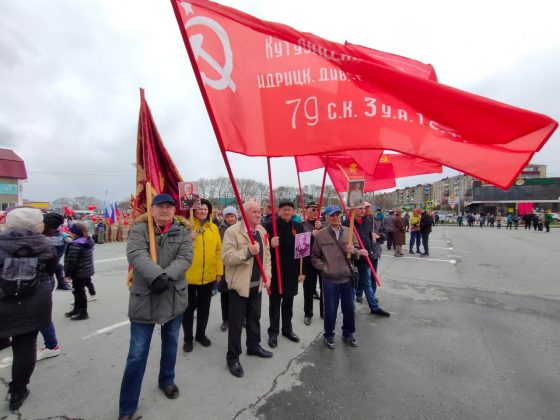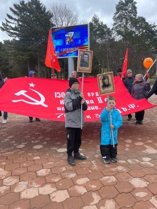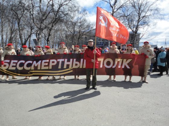 Коммунисты города Анива приняли участие в шествии «бессмертного полка», праздничного мероприятия в день Победы.