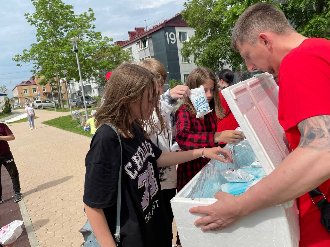 15 июня под руководством первого секретаря Сахалинского Обкома Комсомола Павла Соловова, комсомольцы Южно-Сахалинска провели очередную акцию «Стаканчик Добра» и угощали жителей, в первую очередь детей планировочных районов Ново-Александровка, Дальнее вкусным мороженым.