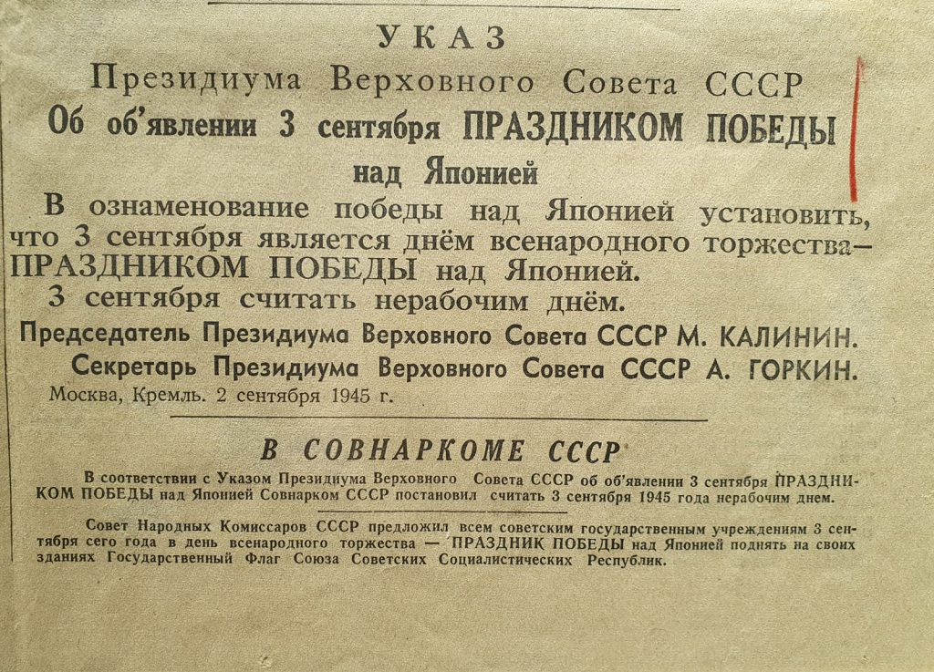 Напомним, что на протяжении последних десятилетий депутаты-коммунисты неоднократно вносили законопроект восстанавливающий историческую справедливость, но ранее парламентское большинство в лице депутатов партии “Единая Россия” не поддерживали инициативу коммунистов, маскируя этот праздник под нейтральным названием – день окончания Второй мировой войны. При этом депутаты партии власти ссылаясь на то, что восстановление исторической справедливости, якобы может подпортить “хорошие” отношения с Японией.