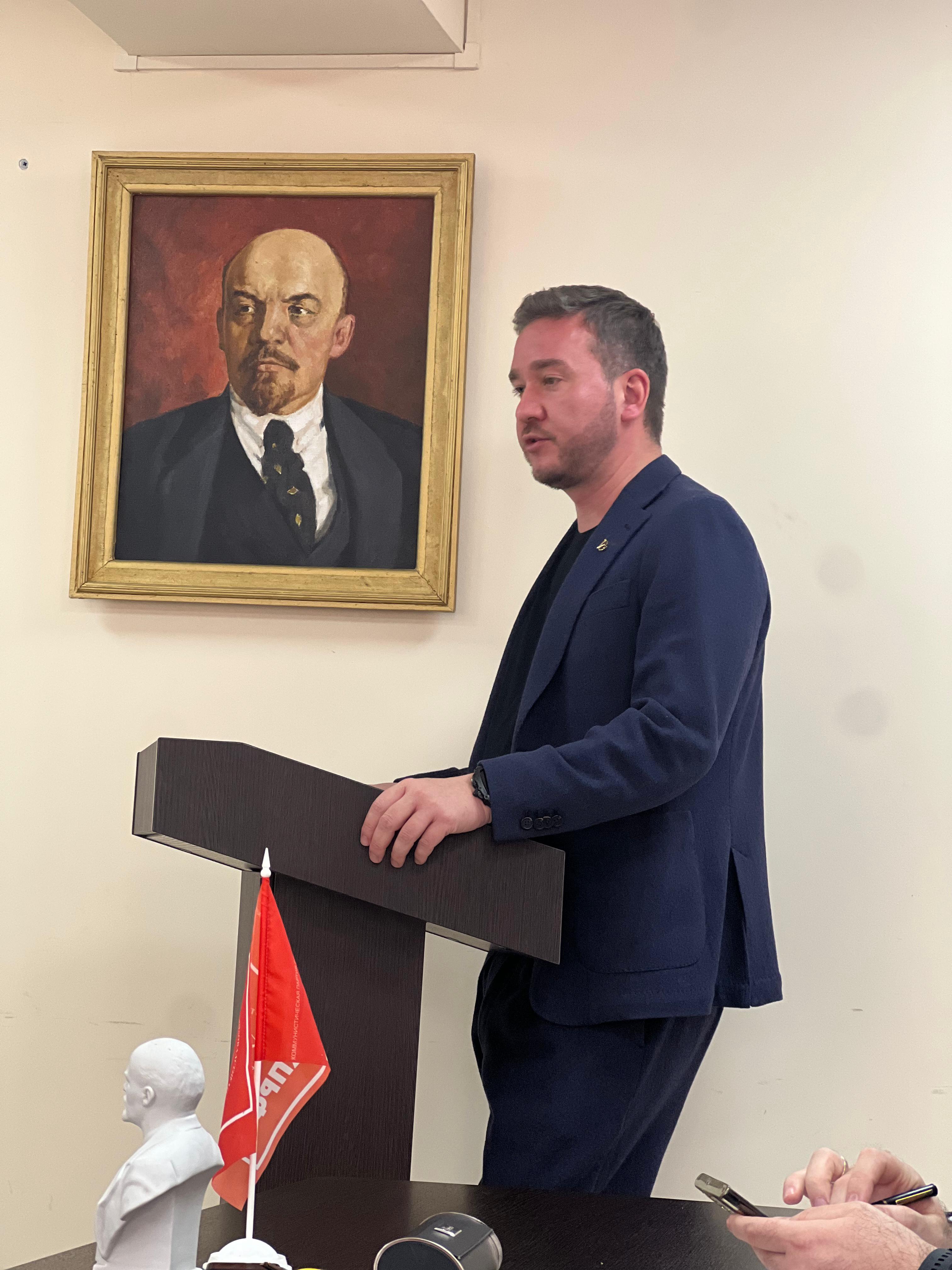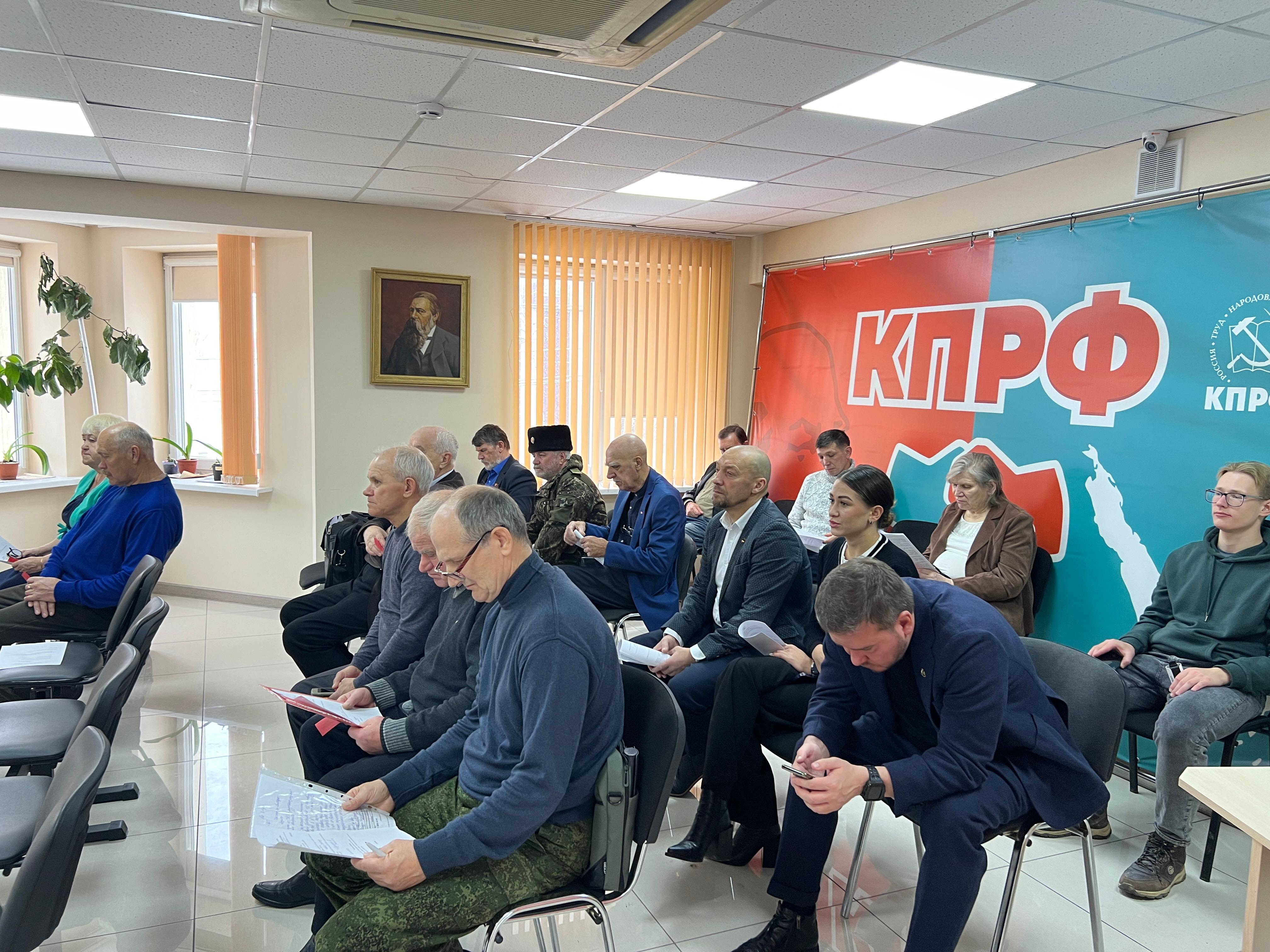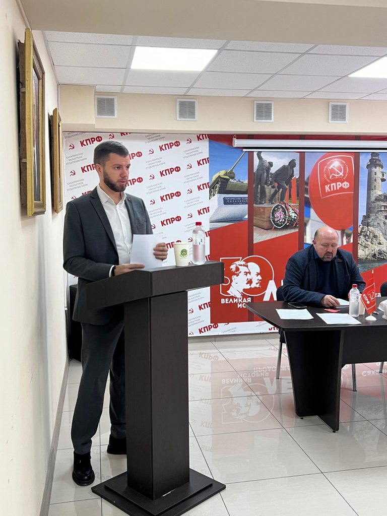 Первым с докладом об итогах выборной кампании 2023 года и задачах Сахалинского областного отделения КПРФ на 2024 год выступил второй секретарь Обкома Антон Андреевич Варанкин.