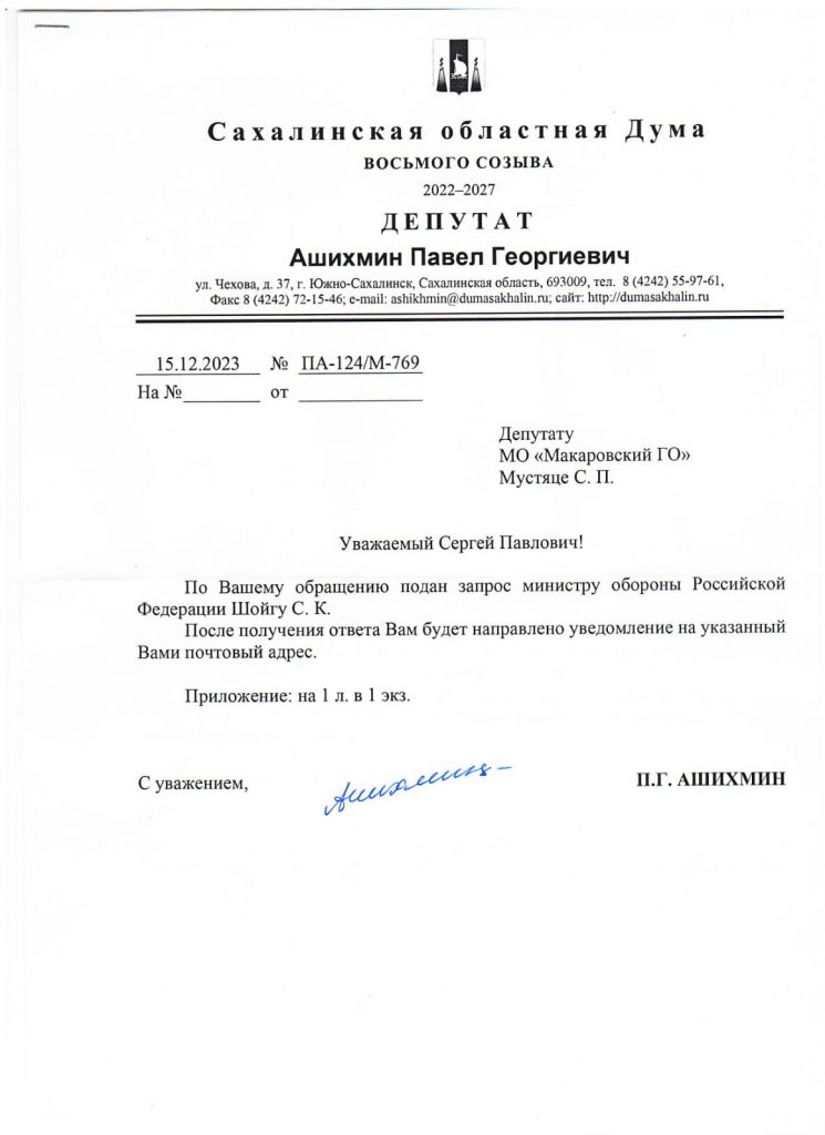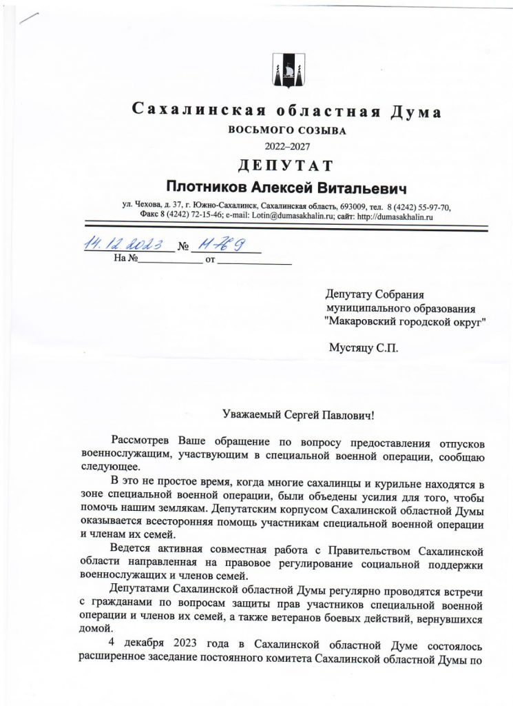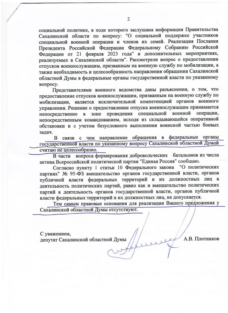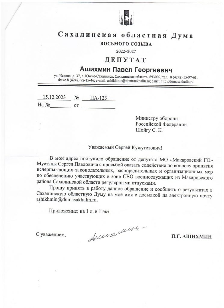 Представляю Вашему вниманию два разных подхода и разительно противоположных отношений областных депутатов к вопросу об Отпусках из СВО, руководителей фракций в Сахалинской Думе: КПРФ – депутата Ашихмина П. Г. и его “коллеги” из ЕР – Плотникова А. В.