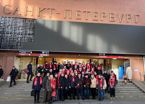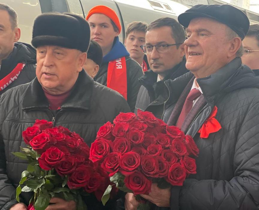 На Московском вокзале делегацию встретили коммунисты Санкт-Петербурга и Ленинградской области во главе с первыми секретарями региональных отделений Р.И. Кононенко и В.А. Царихиным. Гостей города трех революций приветствовали лозунгами: “Зюганов! Партия! Победа!”, “За Харитонова!”.