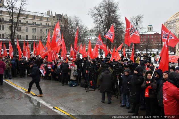 После этого секретарь Московского горкома КПРФ В.В. Обуховский зачитал текст резолюции митинга.