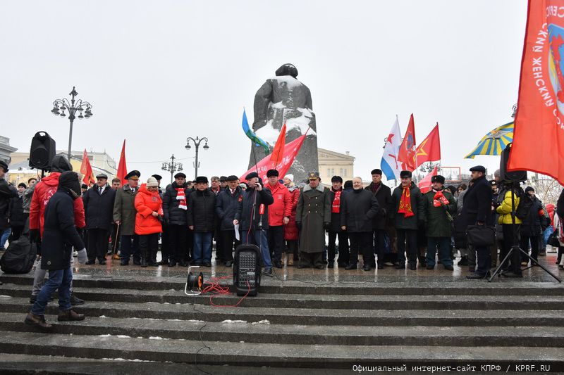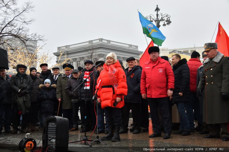 Открыл и вел митинг заместитель Председателя ЦК КПРФ, Руководитель Общероссийского штаба протестных действий В.И. Кашин. Он поздравил собравшихся со 106-й годовщиной победоносной Красной Армии и Военно-Морского флота. «Наша армия, рожденная в горниле Гражданской войны, сумела пройти уникальный путь, – подчеркнул Владимир Иванович. – Она не только победила Антанту, но и уничтожила гидру фашизма во время Второй Мировой войны. Она защищала мир на планете, помогала на всех континентах нести правду, добро и справедливость».