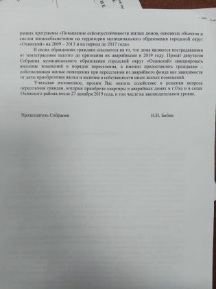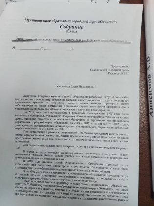 По сути, многие охинцы скоро просто окажутся на улице. Волнует ли их это? Разумеется, а как вы думаете?! Люди пишут во все возможные инстанции, обращаются в правоохранительные органы. Когда руководитель фракции КПРФ в Сахалинской областной Думе Павел Георгиевич Ашихмин проводил прием граждан в Охе, это было самым частым вопросом…