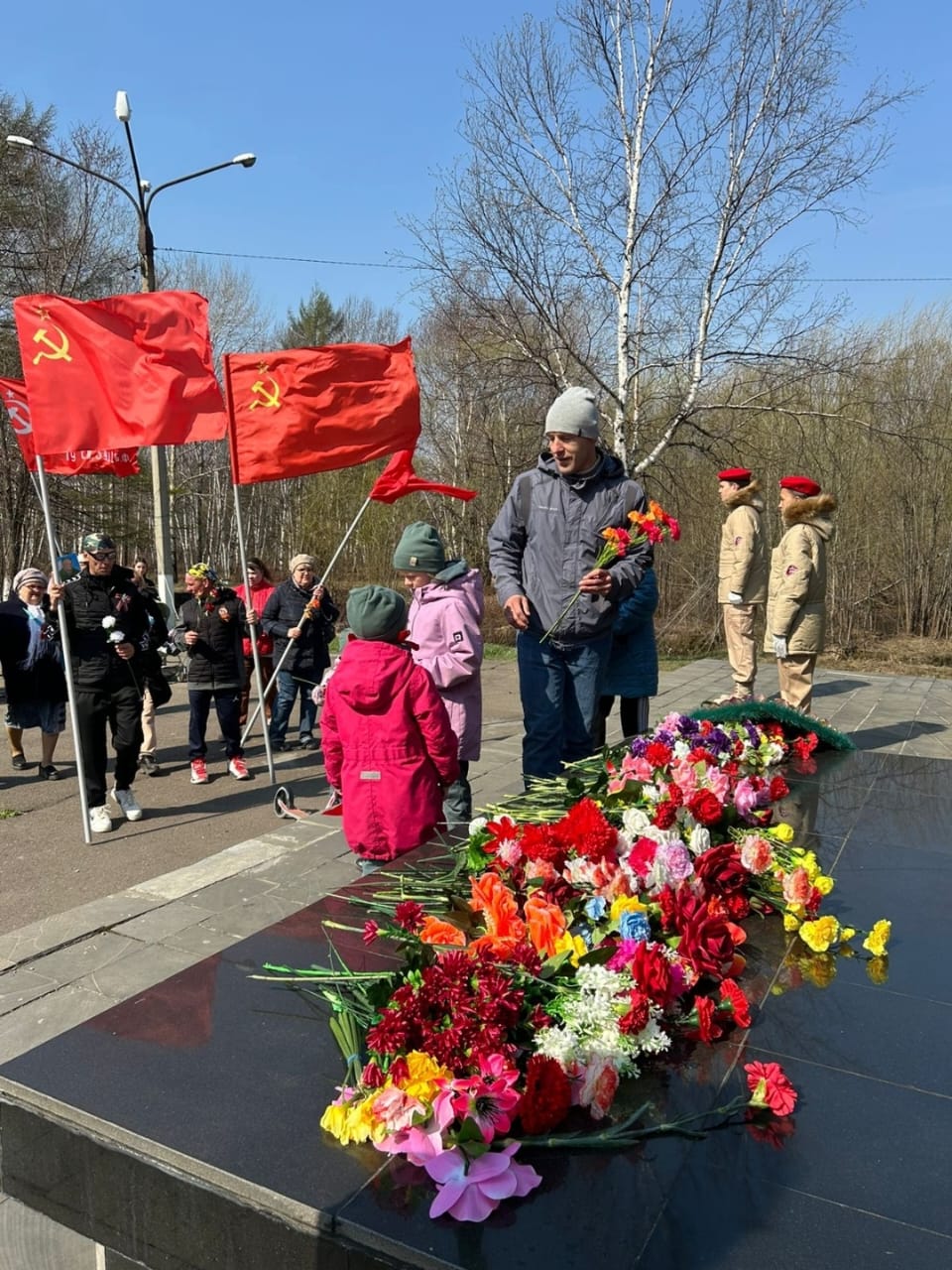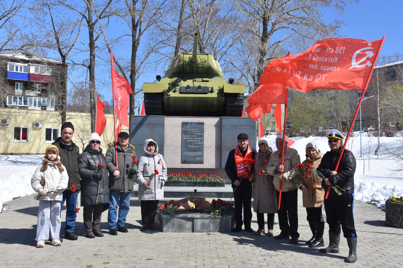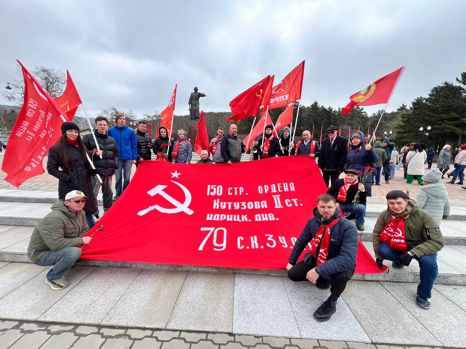 Сегодня коммунисты всех населенных пунктов Сахалинской области отдали дань уважения бойцам Рабоче-крестьянской Красной Армии и труженикам тыла, всем тем, кто всеми силами приближал заветный миг Победы.