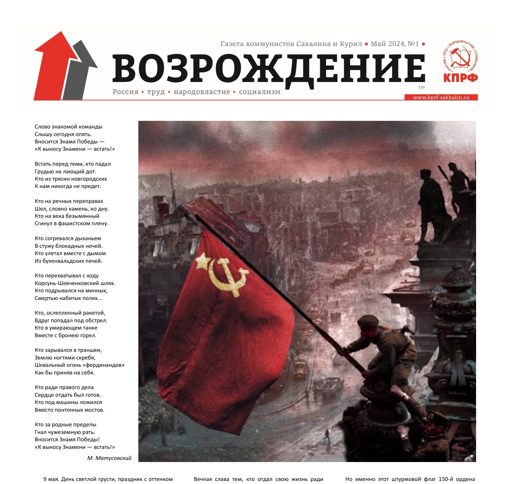 Вышел в свет очередной номер печатного издания Сахалинского областного отделения КПРФ, газеты “Возрождение”.
