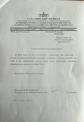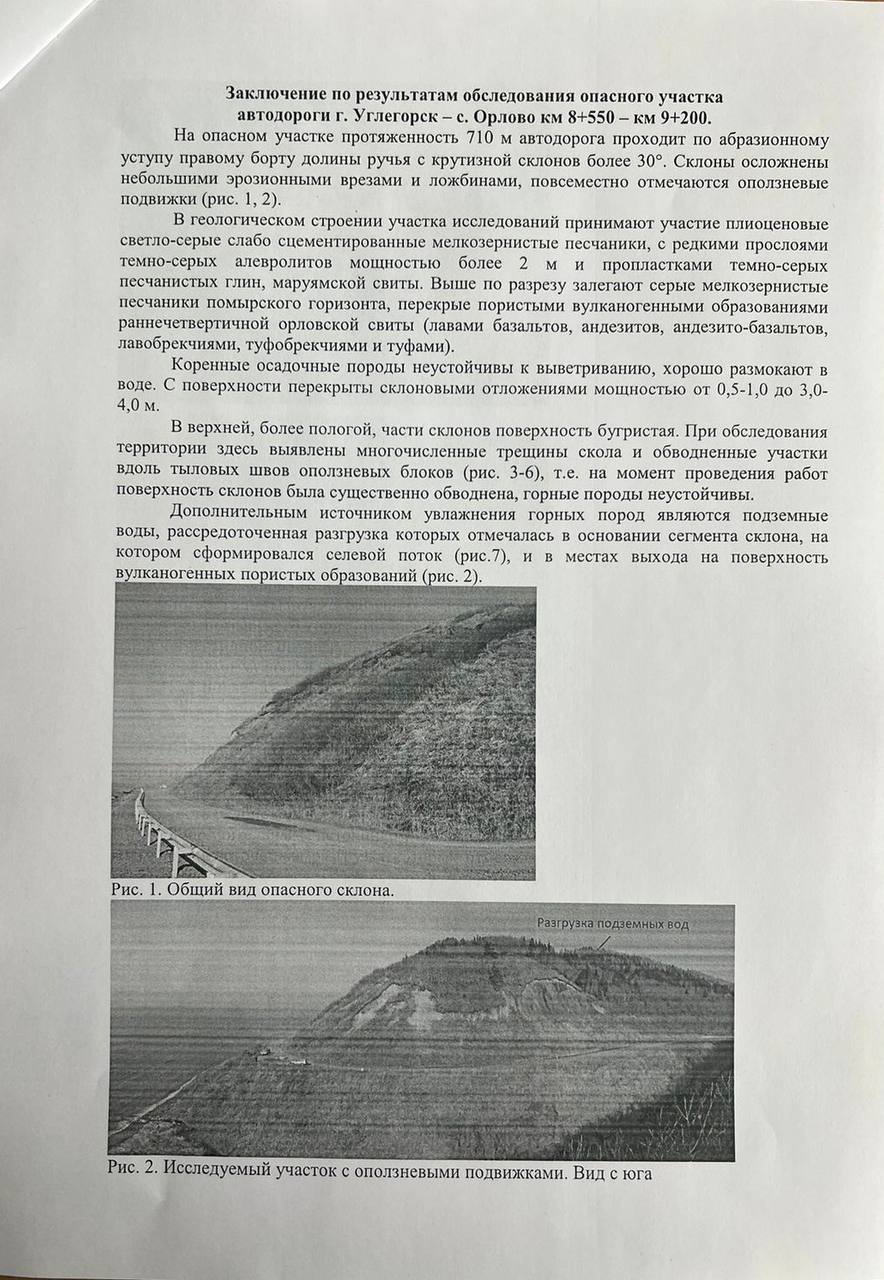 Поводом для обращения послужила информация директора Сахалинского филиала ДВГИ ДВО РАН, руководителя лаборатории лавинных и селевых процессов Юрия Генсиоровского, который на своей странице VK (https://vk.com/wall350976320_263) поделился информацией, о том, что девять лет назад сахалинские ученые обследовали сопку перед Изыльметьевским перевалом дороги Углегорск-Поречье и рекомендовали пути решения.