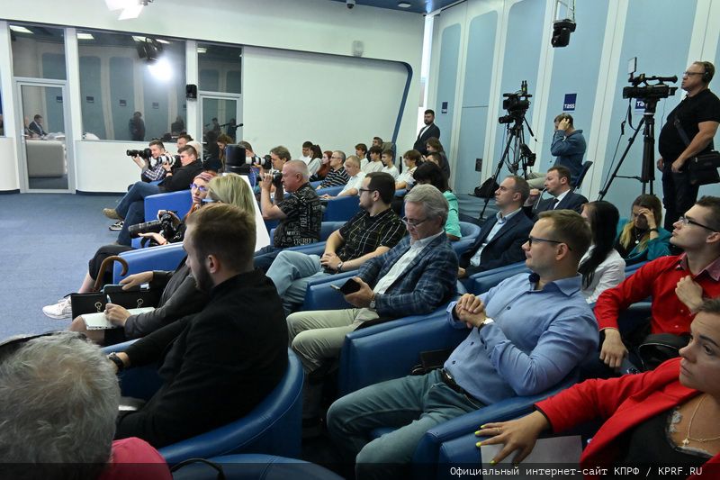 В пресс-конференции приняли участие Председатель ЦК КПРФ, Руководитель фракции КПРФ в Государственной Думе Г.А. Зюганов, заместитель Председателя ЦК КПРФ, Председатель Комитета Государственной Думы по аграрным вопросам В.И. Кашин, Председатель Комитета Государственной Думы по защите семьи, вопросам отцовства, материнства и детства, Председатель Общероссийского общественного движения «Всероссийский женский союз – «Надежда России» Н.А. Останина, член Президиума ЦК КПРФ, депутат Государственной Думы всех восьми созывов, Председатель Комитета Государственной Думы по развитию Дальнего Востока и Арктики Н.М. Харитонов, секретарь ЦК КПРФ, первый заместитель Председателя Комитета Государственной Думы по информационной политике, информационным технологиям и связи А.А. Ющенко.