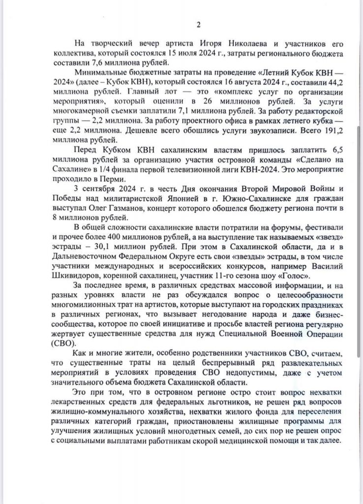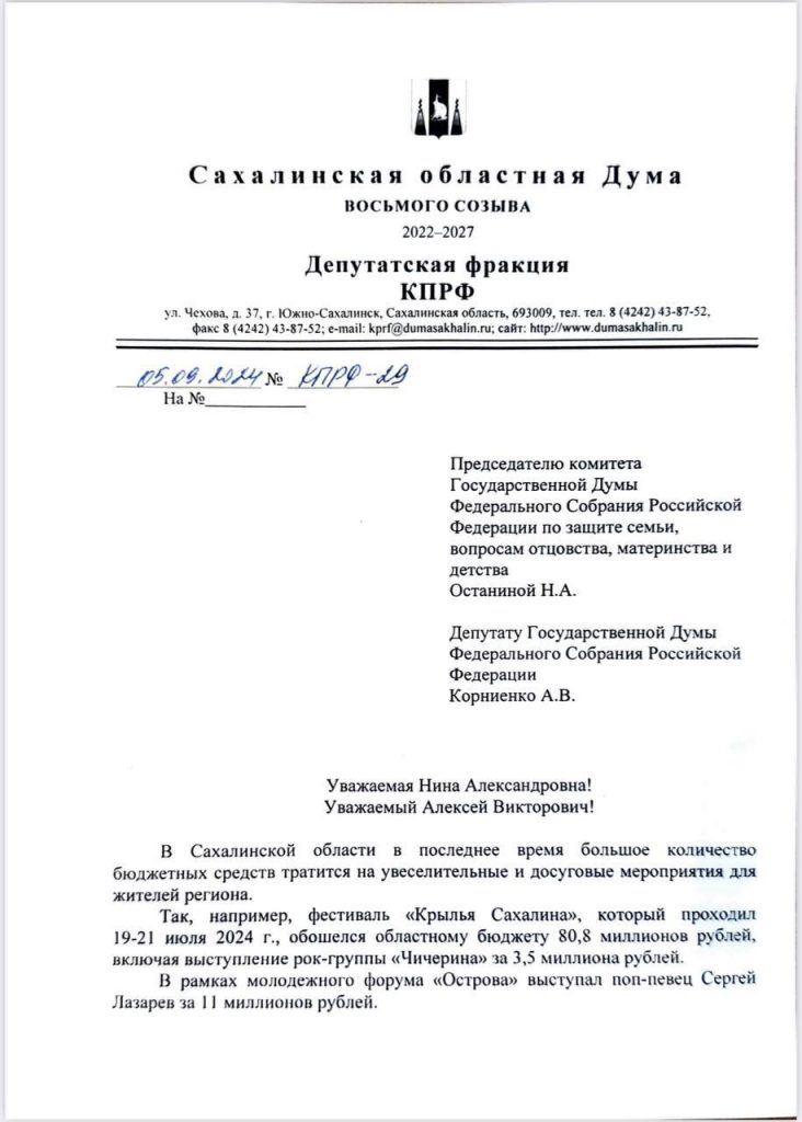 Фракция КПРФ в составе депутатов Павла Ашихмина (https://t.me/ashikhmin_deputat65) и Михаила Черевика (https://t.me/Cherevik2022) была единственной в Областной Думе, кто не поддержал выделение 400 млн. бюджетных средств на эти предвыборные развлечения.