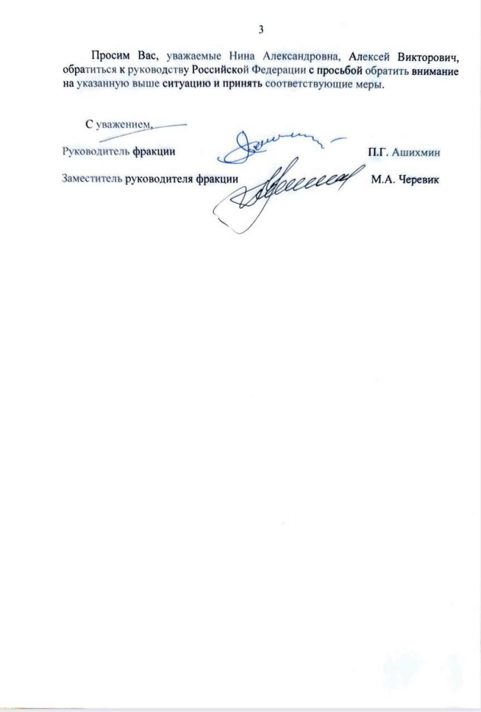 Мы также обратились к нашим федеральным коллегам с просьбой обратить внимание на ситуацию и напомнить руководству страны о приоритетных направлениях для бюджетных вложений.