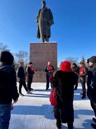 Сегодня на Сахалине и Курилах коммунисты и сторонники КПРФ почтили память Ленина. Мероприятия прошли по всему региону, а в Южно-Сахалинске, у памятника Владимиру Ильичу, собрались десятки людей. В своей речи первый секретарь Сахалинского обкома КПРФ Павел Ашихмин отметил, что Ленин был гением, сумевшим впервые в истории объединить разрозненные массы людей и создать первое в мире социалистическое государство. Его идеи дали мощный старт развитию страны, которая позже стала сверхдержавой.
