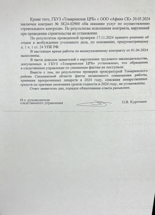 А трудностей и проблем хватает. Одно их перечисление заняло бы немало места. Нарушения трудовых прав при оплате труда – от занижения тарифных ставок до незаконного лишения премии; нецелевое расходование средств; грубейшие нарушения санитарных норм и правил; необоснованные увольнения высококвалифицированных специалистов и прием на работу сомнительных сотрудников, часто близких к руководству, но далеких от медицины; аварийное состояние многих помещений, в которых вынужденно ведется прием пациентов и многое другое. Под обращением подписались двести человек, но могли бы подписаться гораздо больше. Разве есть в Сахалинской области район, где с медициной все в полном порядке?