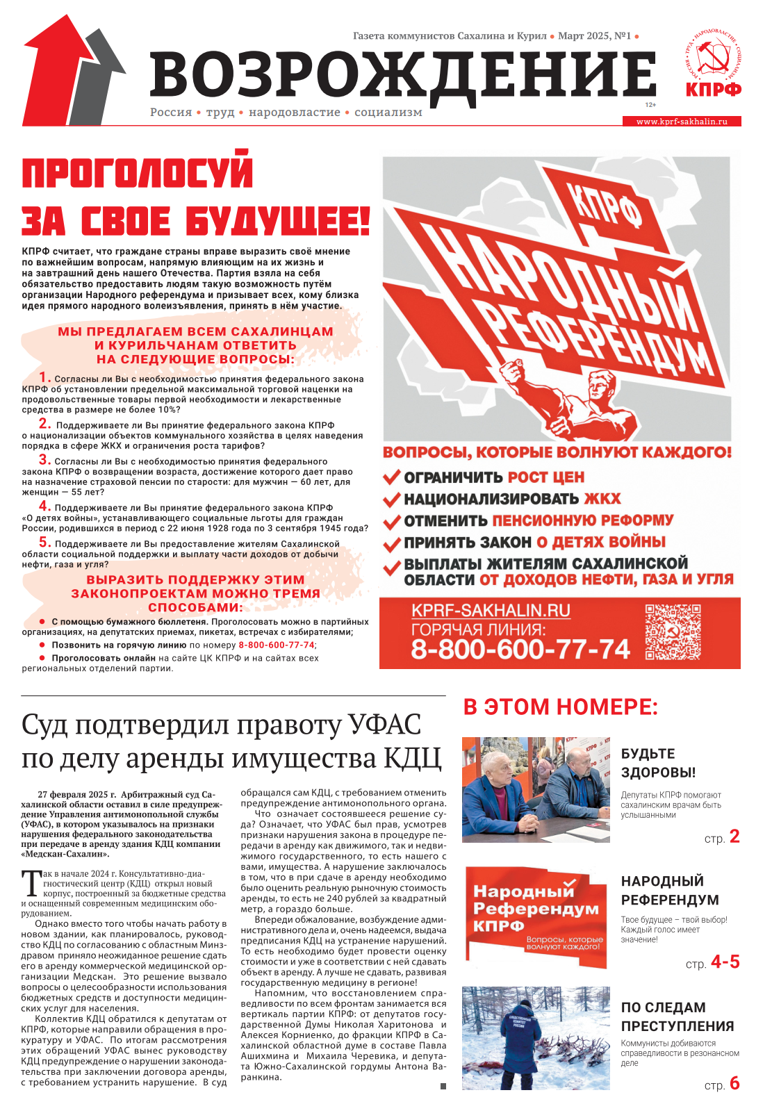 Вышел в свет очередной номер печатного издания Сахалинского областного отделения КПРФ, газеты “Возрождение”.