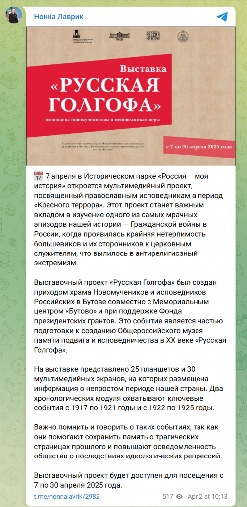 Всё сказанное нами здесь обращено в большей степени не к авторам данного одиозного проекта, не к «Русской Голгофе». Едва ли от них можно требовать объективности. Каждый волен жить в плену собственных иллюзий и в придуманном мире альтернативной истории.