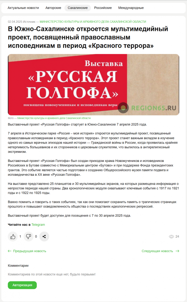 В этом году мы отмечаем столетний юбилей возвращения северного Сахалина в состав нашей страны. Это — официальная памятная дата, праздник для всего островного региона. Но, видимо, есть люди, которым эта дата совсем не по нутру. Иначе трудно объяснить, почему именно в этот год, буквально за месяц до юбилея, решено провести в Южно-Сахалинске некое мероприятие, посвящённое православным исповедникам в период «Красного террора».