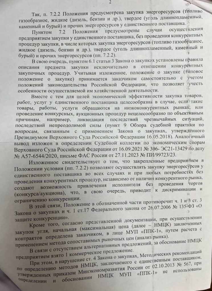 В своих ответах прокуратура подтвердила наличие нарушений при определении начальной максимальной цены контракта: альтернативные источники информации о ценах не использовались, сведения о рыночной стоимости угля должным образом не проверялись. Это уже привело к завышению контрактной цены.