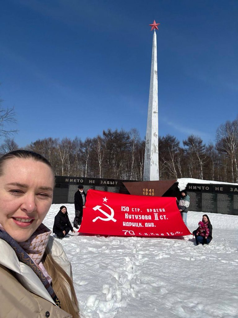 🚩 Увеличенная копия Знамени Победы продолжает своё шествие по районам Сахалинской области в рамках патриотической акции, организованной Сахалинским Обкомом КПРФ. После Смирныховского района Знамя прибыло в Тымовское.