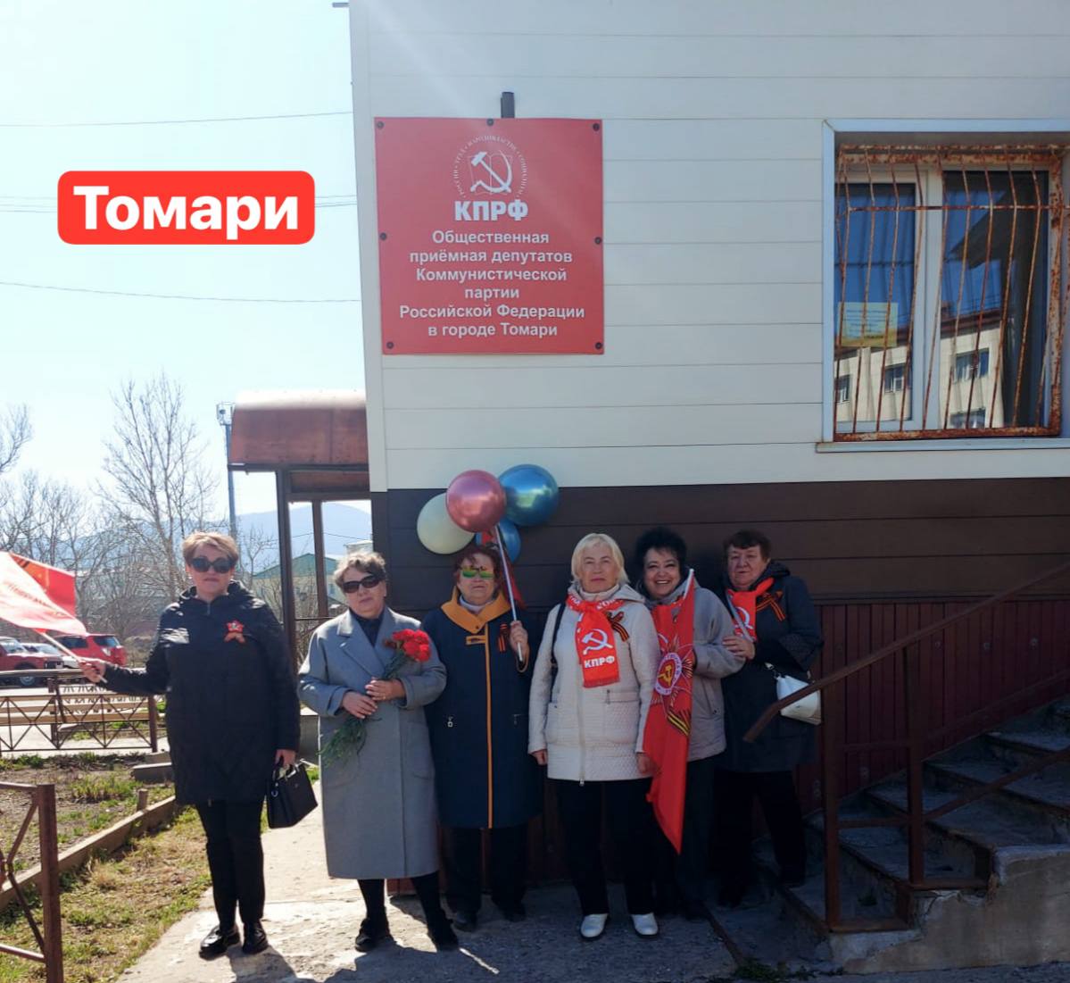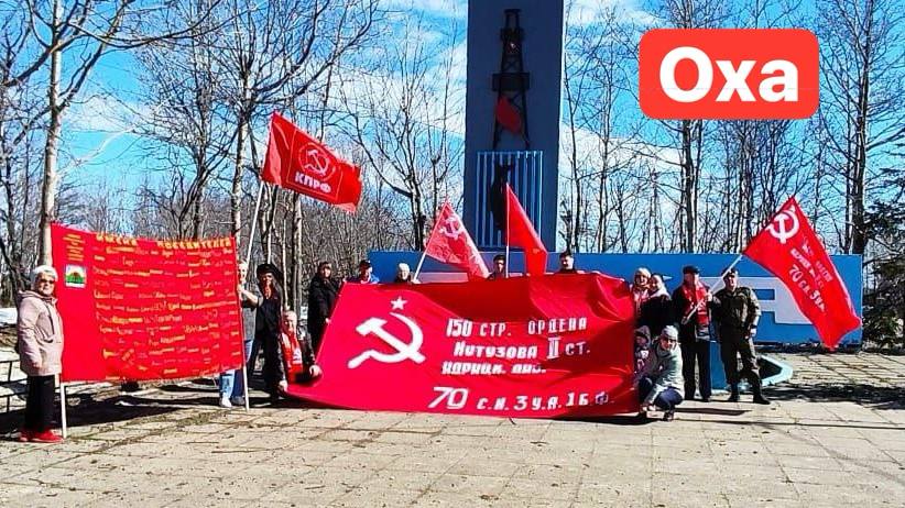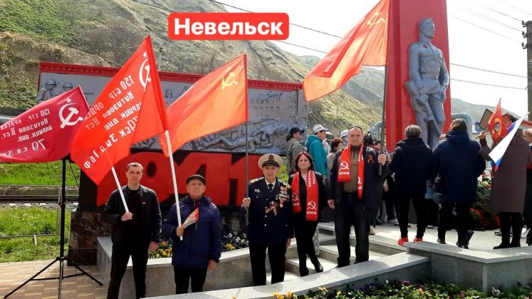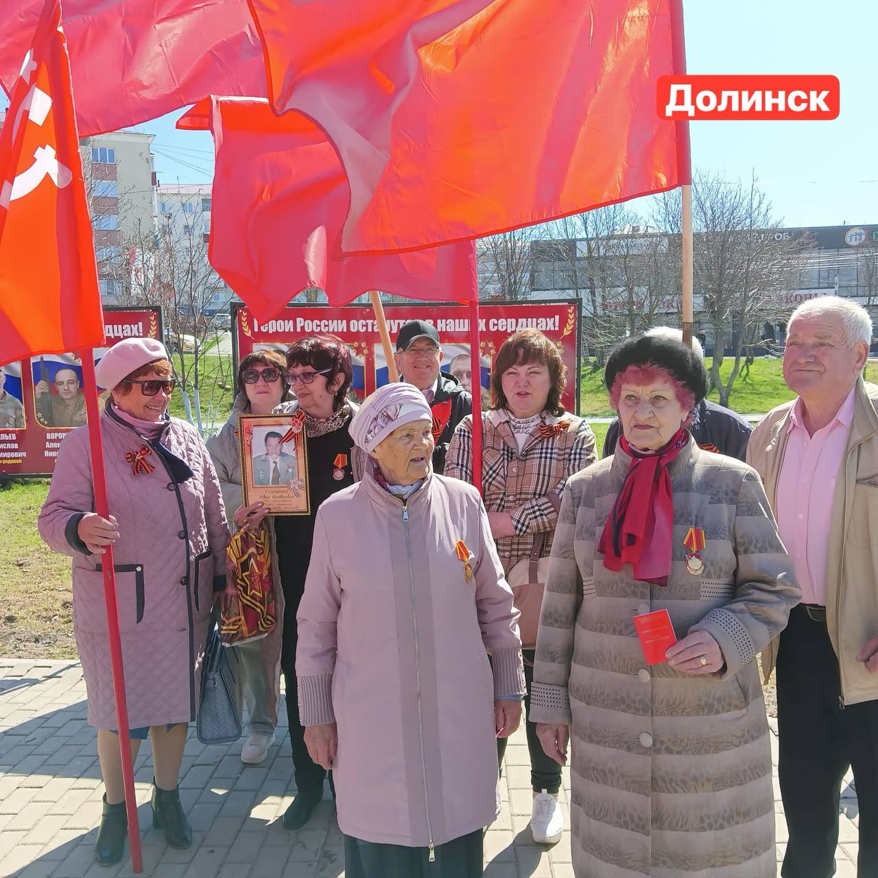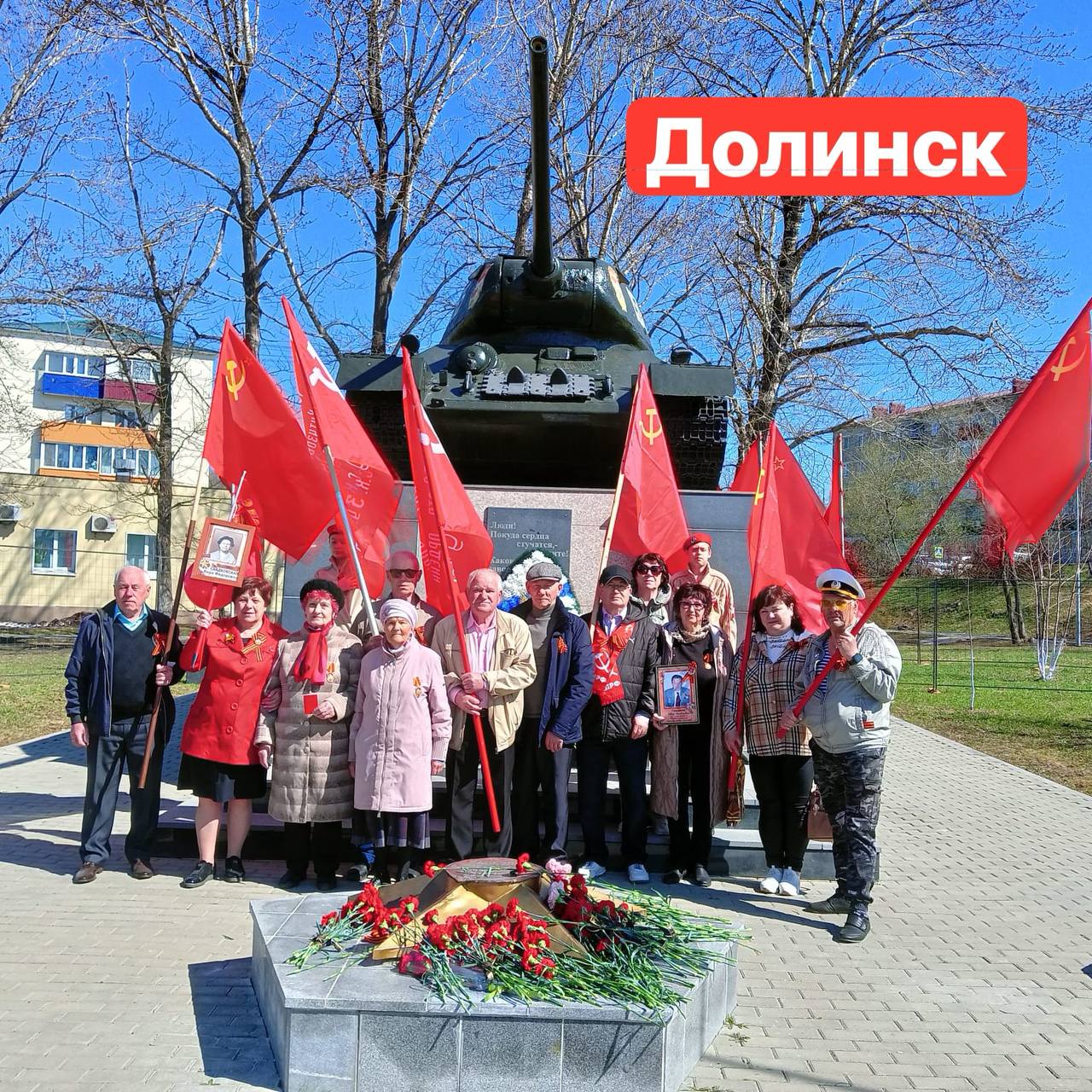 Во всех районах области, где проходили шествия Бессмертного полка и митинги, можно было увидеть их красные знамена. В областном центре коммунисты и комсомольцы Южно-Сахалинска посетили парад Победы, а затем руководство обкома КПРФ приняло участие в праздничных мероприятиях в 39-м радиотехническом полку ВКС России, где кроме Дня Победы отмечался так же день рождения полка.