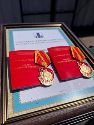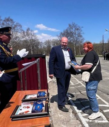 Депутаты фракции КПРФ Сахалинской областной Думы Павел Ашихмин и Михаил Черевик, а также депутат Южно-Сахалинской Гордумы Антон Варанкин наградили военнослужащих и гражданский персонал благодарственными письмами и памятными медалями ЦК КПРФ «80 лет Победы».