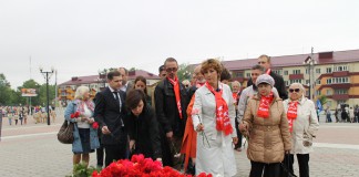 В День Советской Армии и Военно-Морского Флота коммунисты Южно-Сахалинска возложили цветы...