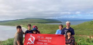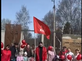 Тымовские коммунисты 1 мая прошли по улицам поселка с флагами КПРФ