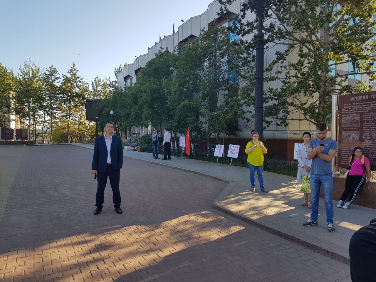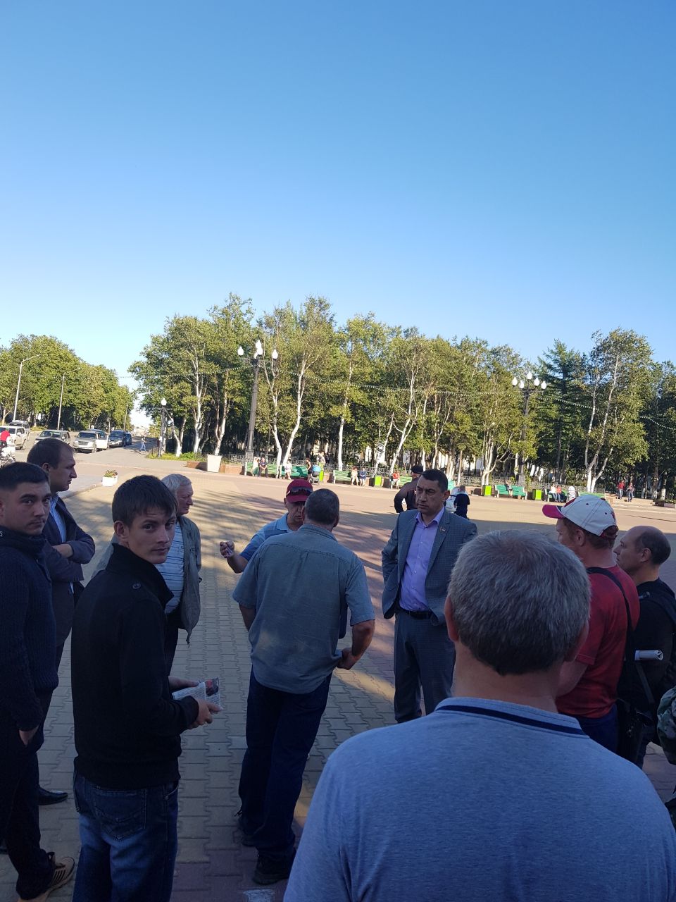 В городе Оха, на площади “Нефтяников”, состоялся сбор жителей, желающих принять участие в пикете на тему: “Нет грабительской ловле Лосося!”