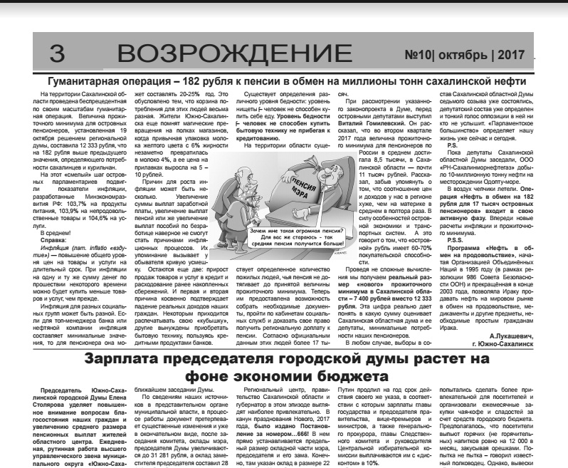 Первое место среди публикаций конечно же занимают «новости с фронта», в которых рассказывается о том, как происходит дележка нефтяных доходов Сахалинской области. Мало кто верит в легенду о том, что для губернатора и его правительства в регионе подобные поползновения стали неожиданностью. Узнай население об этом заранее – выборы в состав сахалинской Думы могли стать менее предсказуемыми для партии власти. И мы узнаем о грядущем раскулачивании островной казны из средств массовой информации несколько позже. Закрутилось и завертелось, собраны килограммы подписей с требованием сохранить «наши» доходы, региональные депутаты выезжают в Москву. И только ключевые фигуры, ответственные за развитие региона, смогли себе позволить заграницу и выезд на воды.