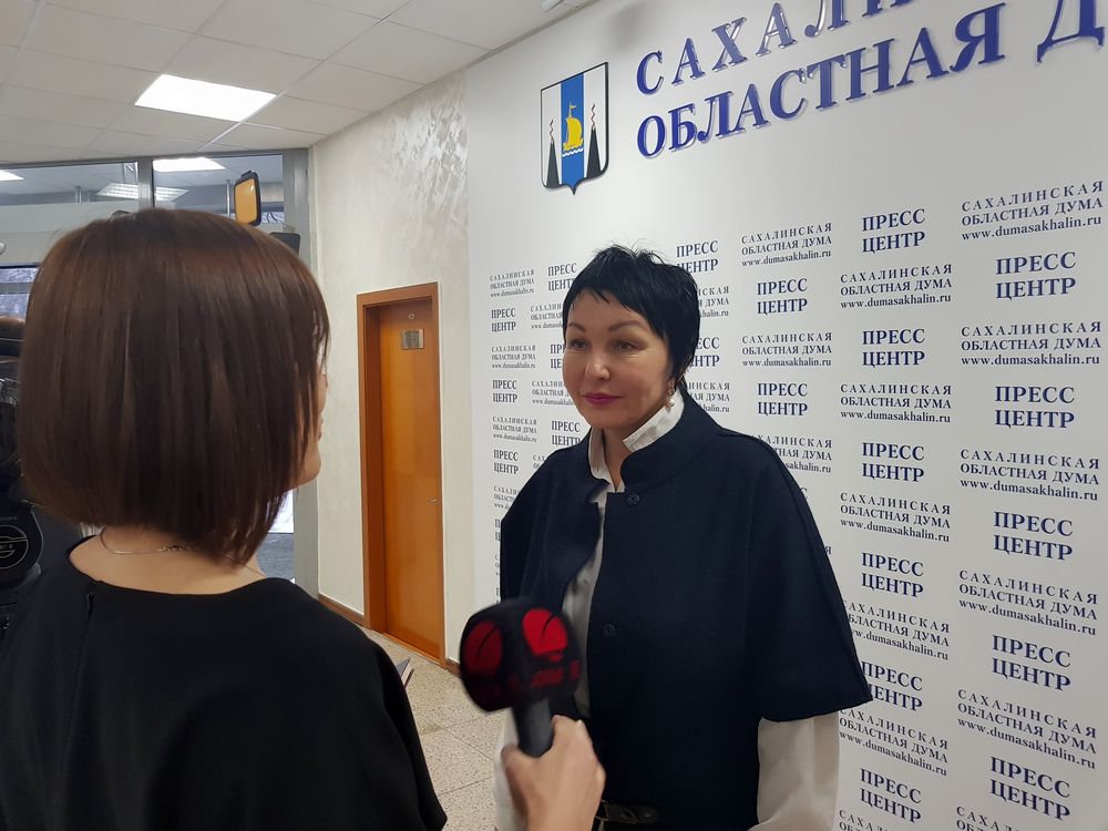 На входе их встречал Андрей Хапочкин, председатель Сахалинской областной Думы.