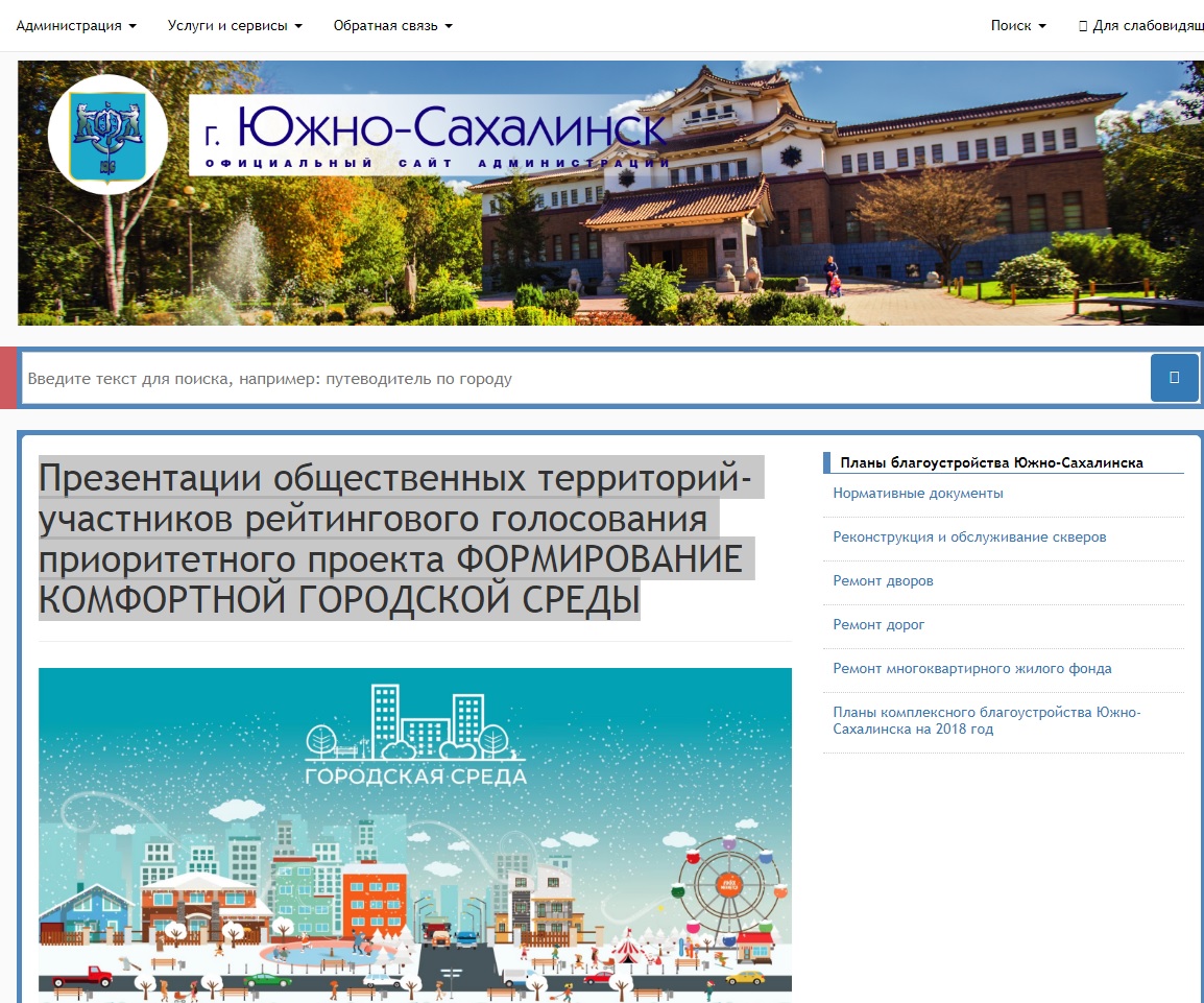 Презентации общественных территорий-участников рейтингового голосования приоритетного проекта ФОРМИРОВАНИЕ КОМФОРТНОЙ ГОРОДСКОЙ СРЕДЫ благополучно исчезли с официального сайта администрации Южно-Сахалинска. Мы попытались разобраться что с ними случилось.