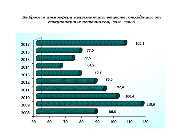 Органы государственной статистики Сахалинской области фиксируют резкое увеличение загрязняющих выбросов в атмосферу от стационарных источников – более 105 тысяч тонн по итогам 2017 года. В сравнении с 2016 годом (77 тысяч тонн) этот показатель стал самым большим за последние восемь лет.