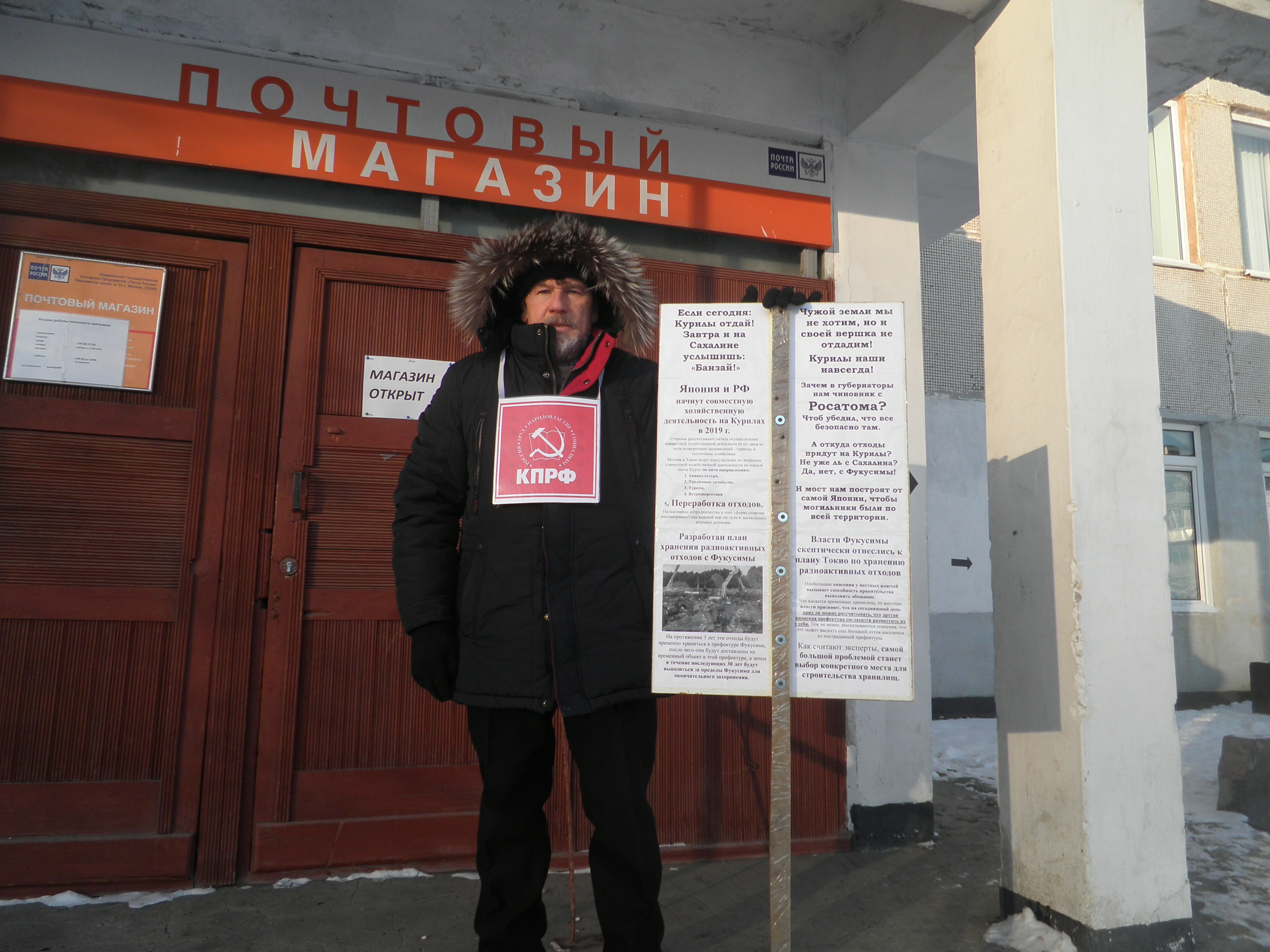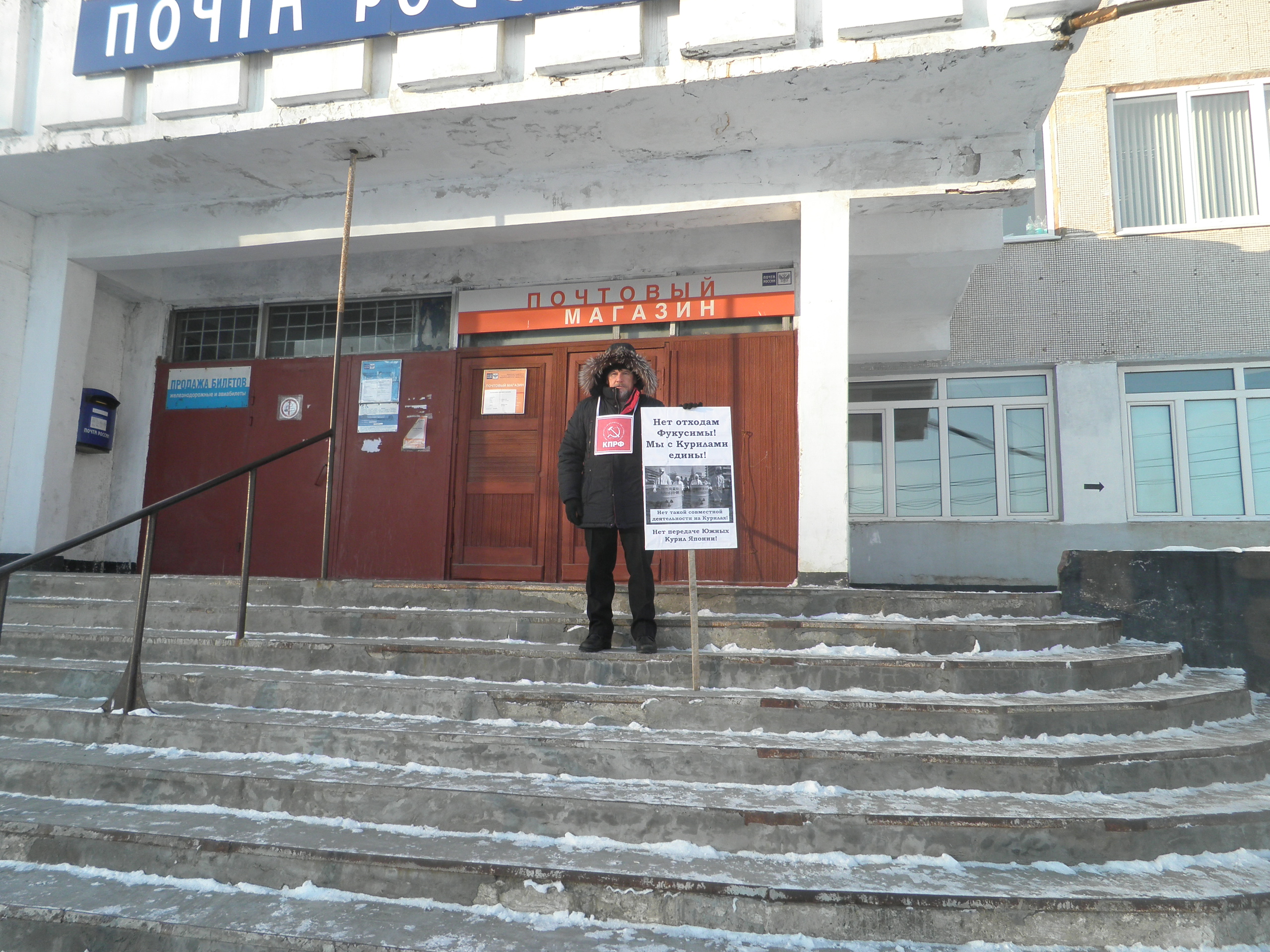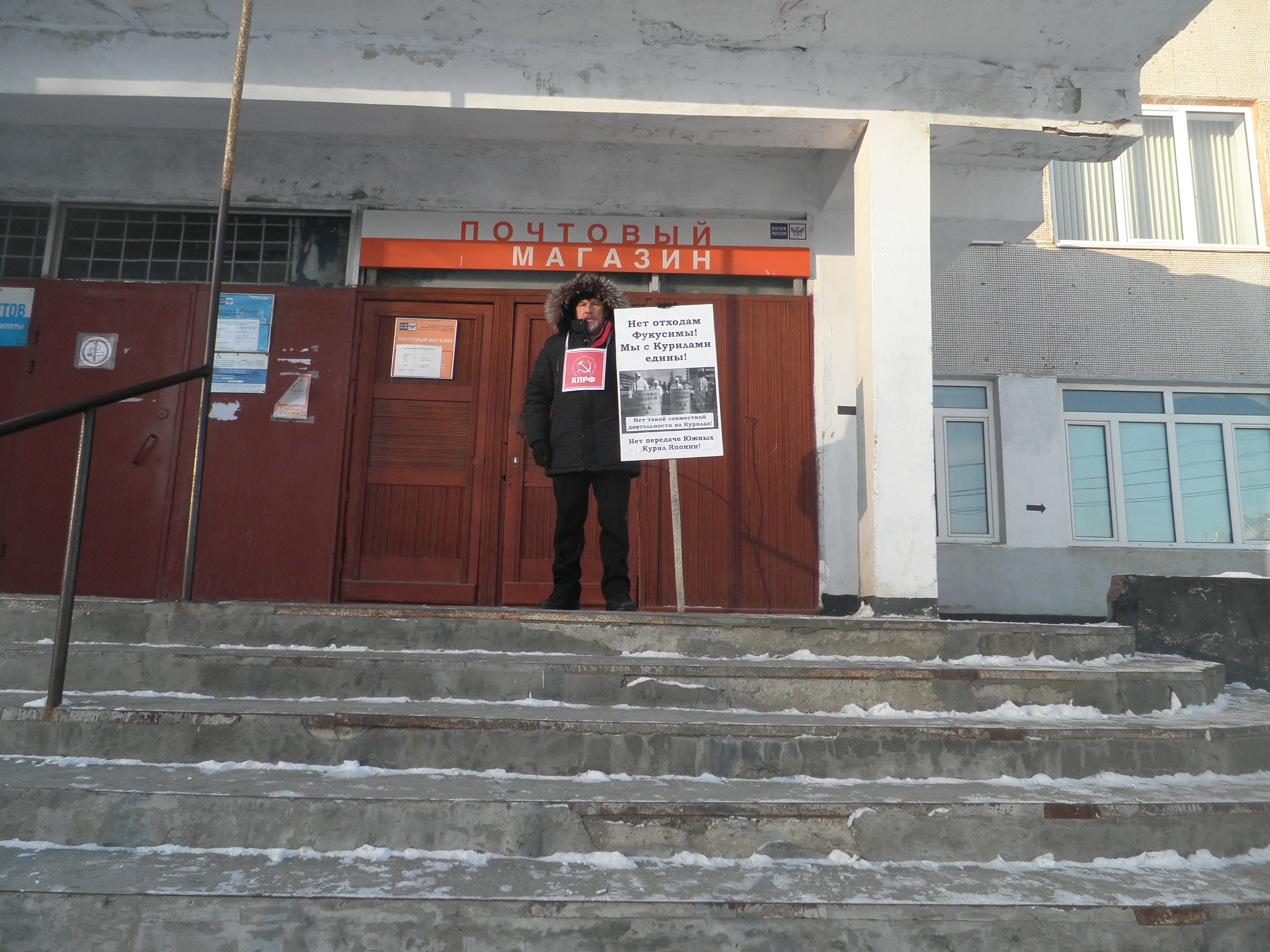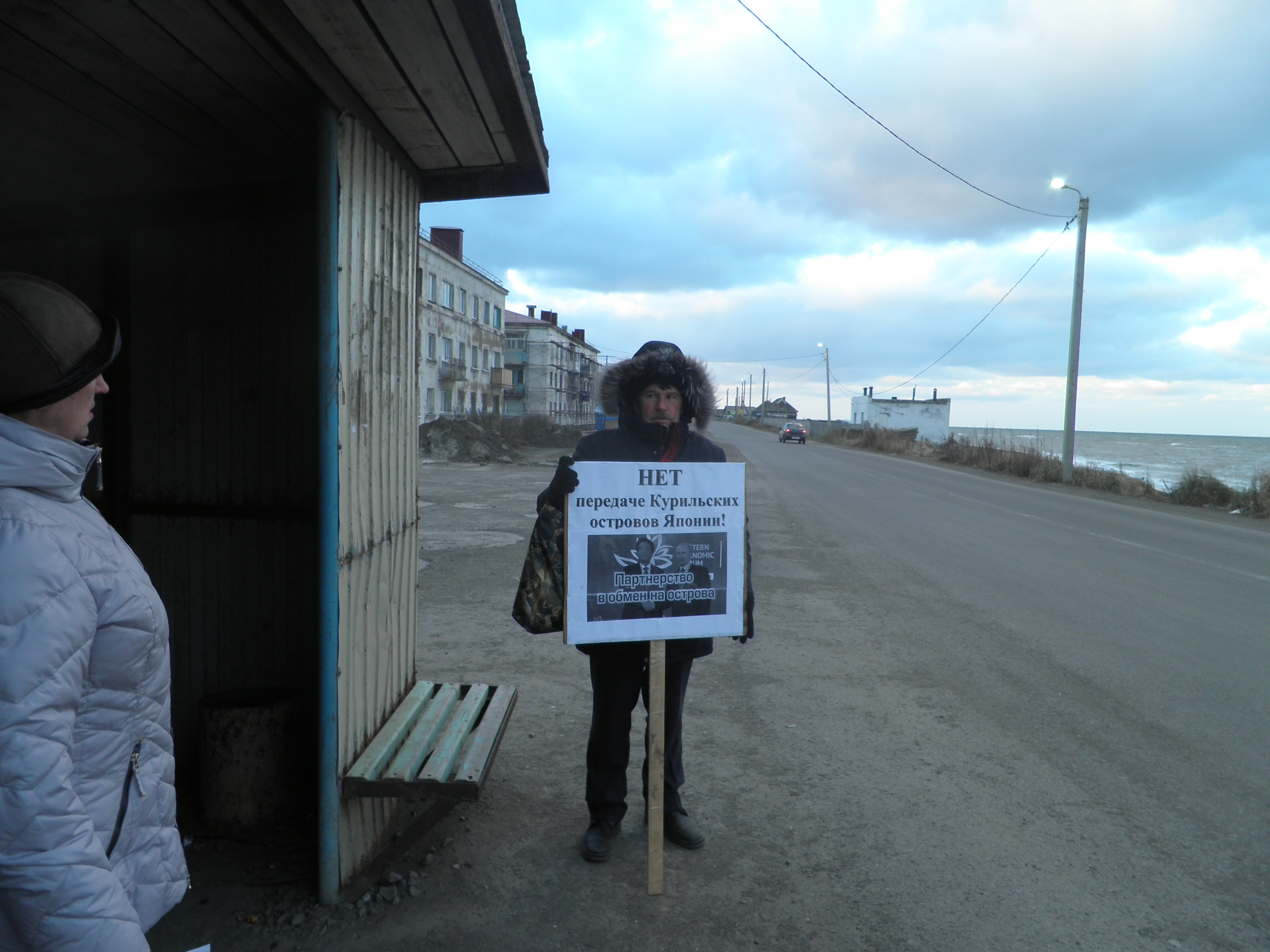 Фоторепортажи Углегорск пикетирует против передачи Курильских островов Японии 18.12.2018 1 В Углегорске не прекращается серия пикетов, направленных против передачи островов малой Курильской гряды Японии. Пресс-центр сахалинского отделения КПРФ.