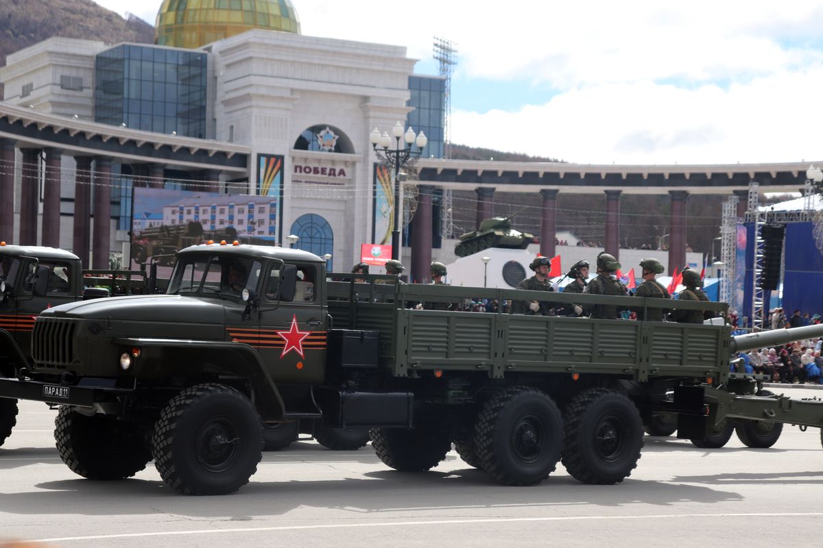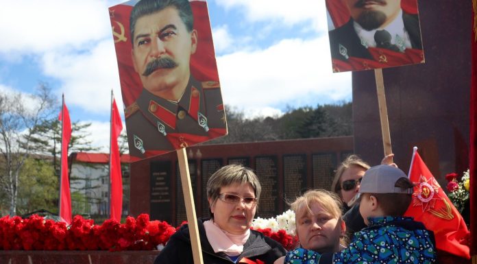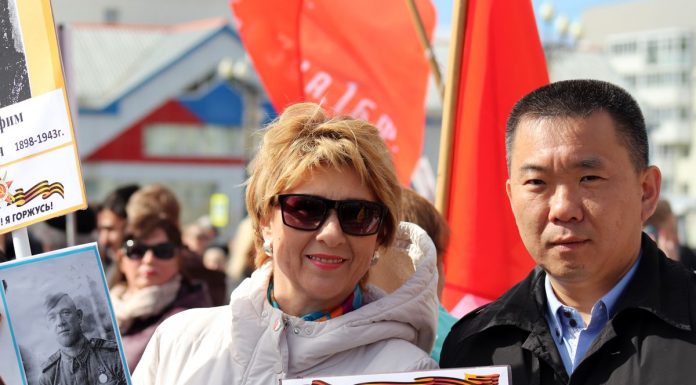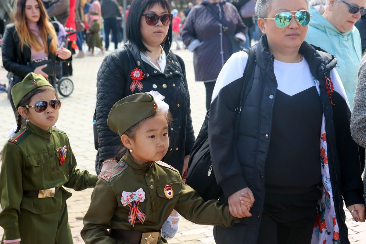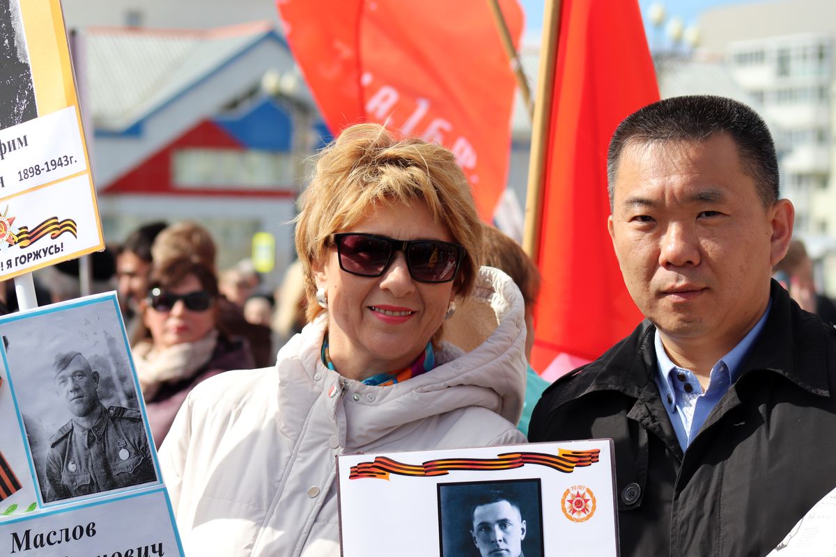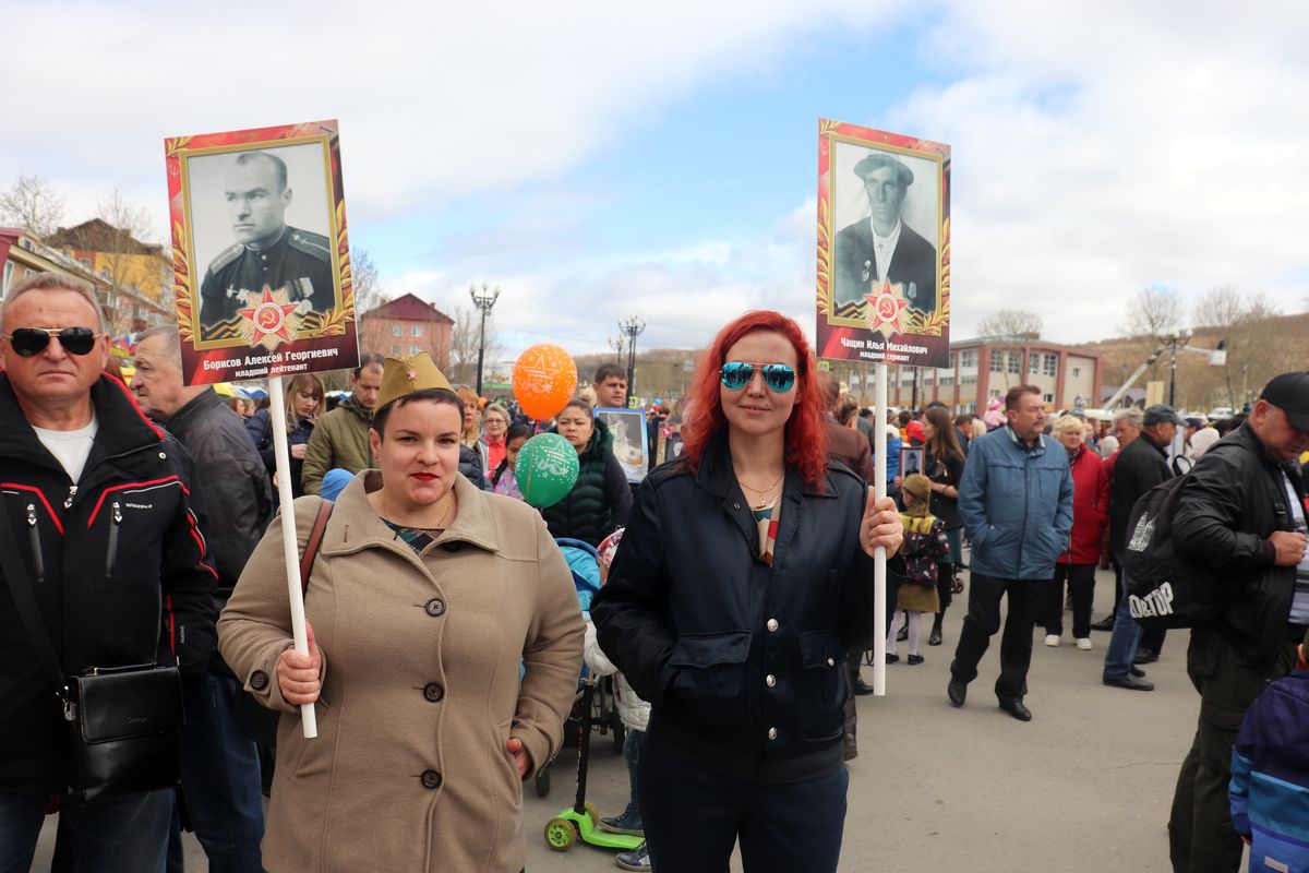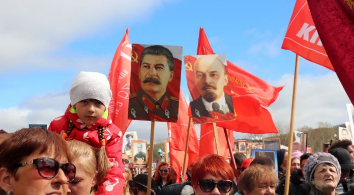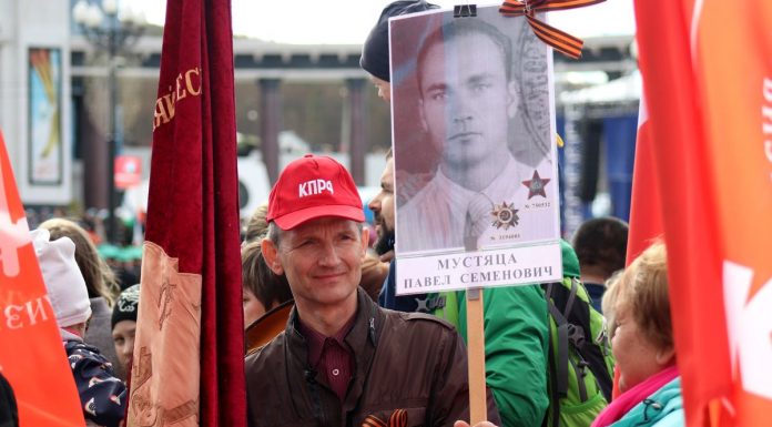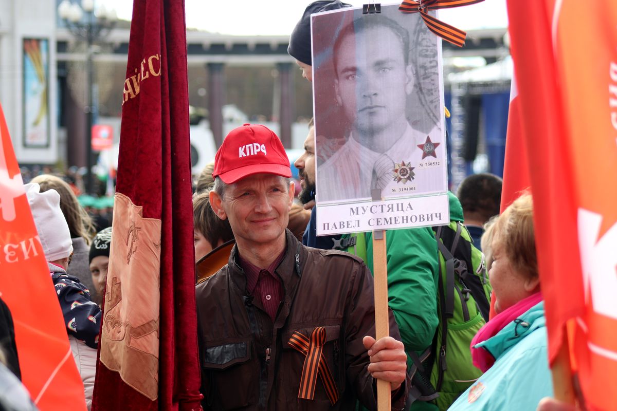 В годовщину великой Победы советского народа над нацистской Германией сахалинские коммунисты и члены ЛКСМ вышли на площадь и прошли в колонне Бессмертного полка с неизменной атрибутикой – Красным флагом победителей, портретами генералисимуса Иосифа Сталина и вождем мирового пролетариата Владимира Ленина.