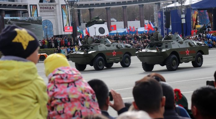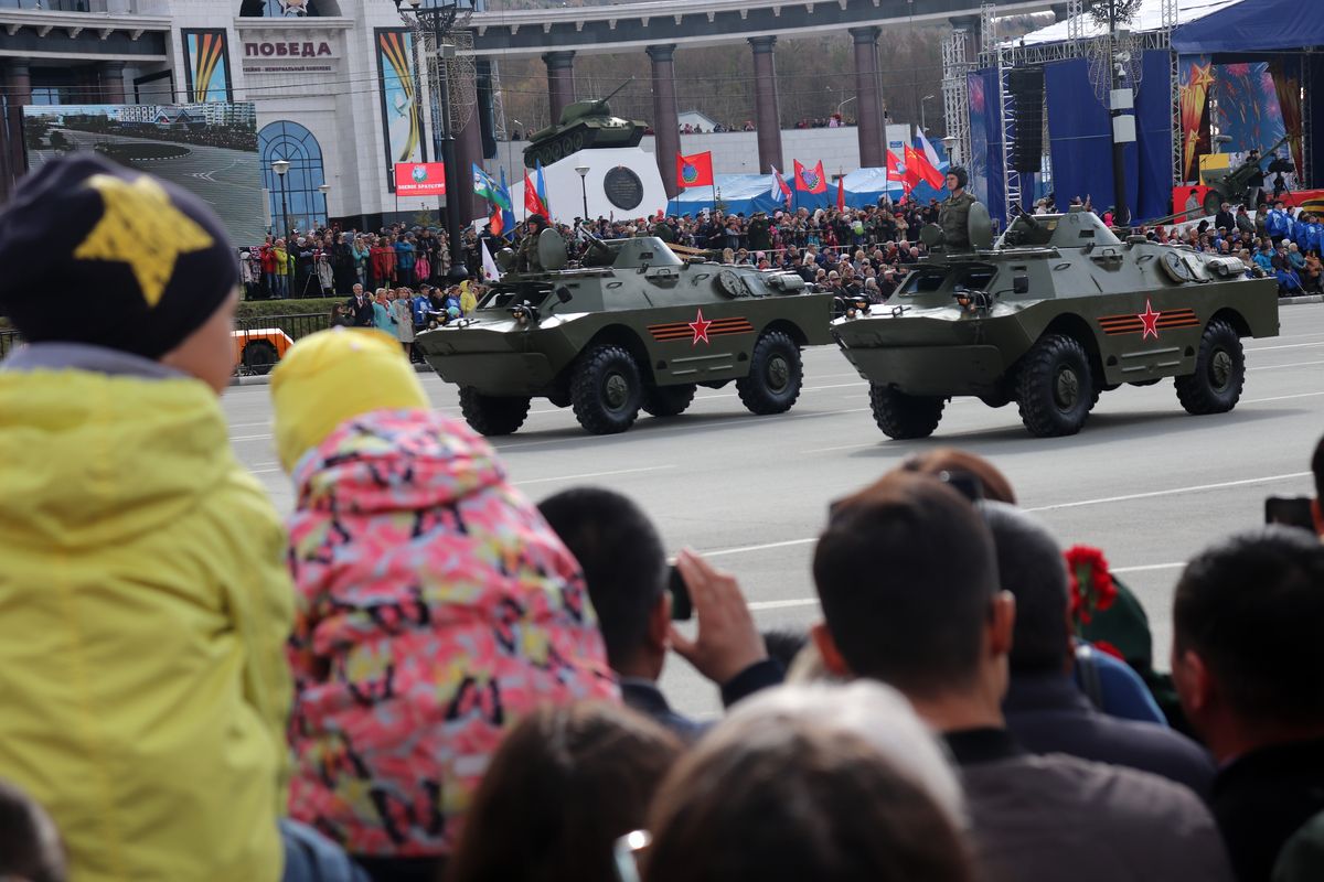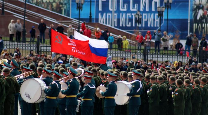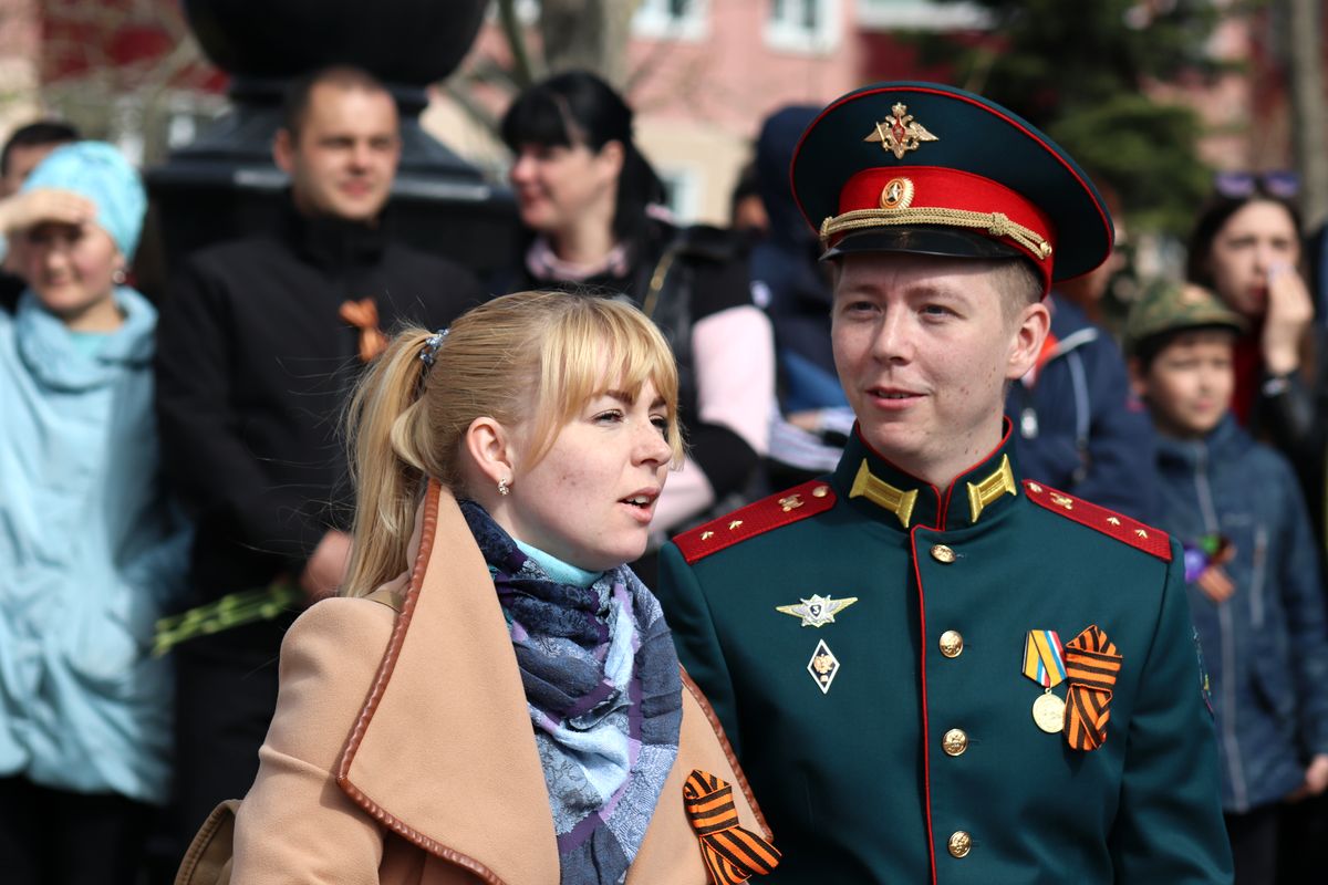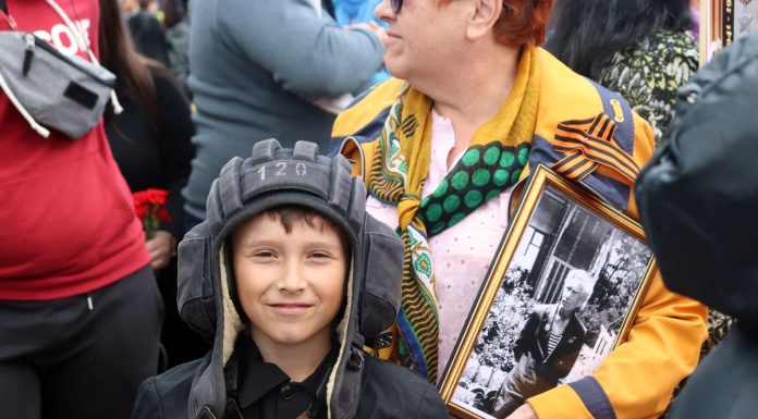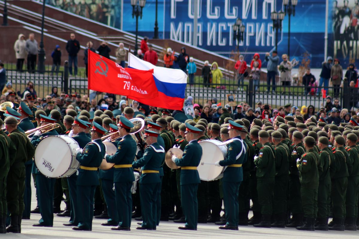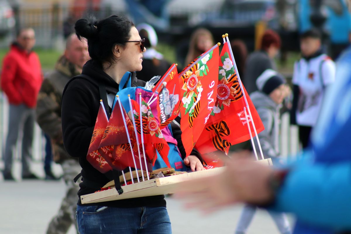 В ходе праздничных мероприятий на улицах звучали советские песни военных лет, а горожане выкрикивали лозунги: “Слава Советскому Союзу!” и “Слава советским воинам победителям!”, которые дружно подхватывали в колоннах.