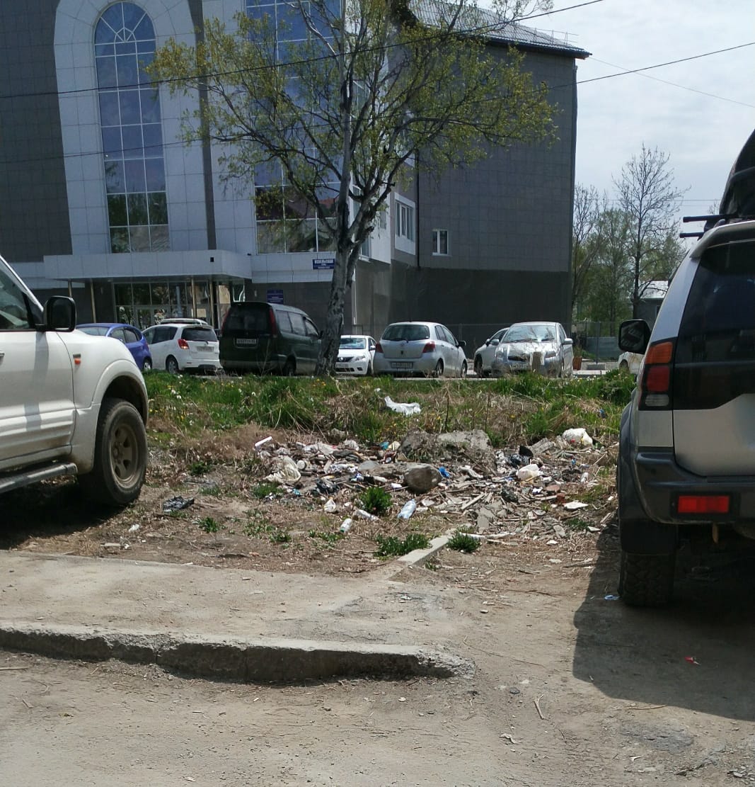 Попасть в этот двор довольно просто. Достаточно проехать мимо небольшого пустыря, на месте которого была обещана обычная, прямоугольная стоянка. Там теперь живет очередной мусор, в прямом смысле слова.