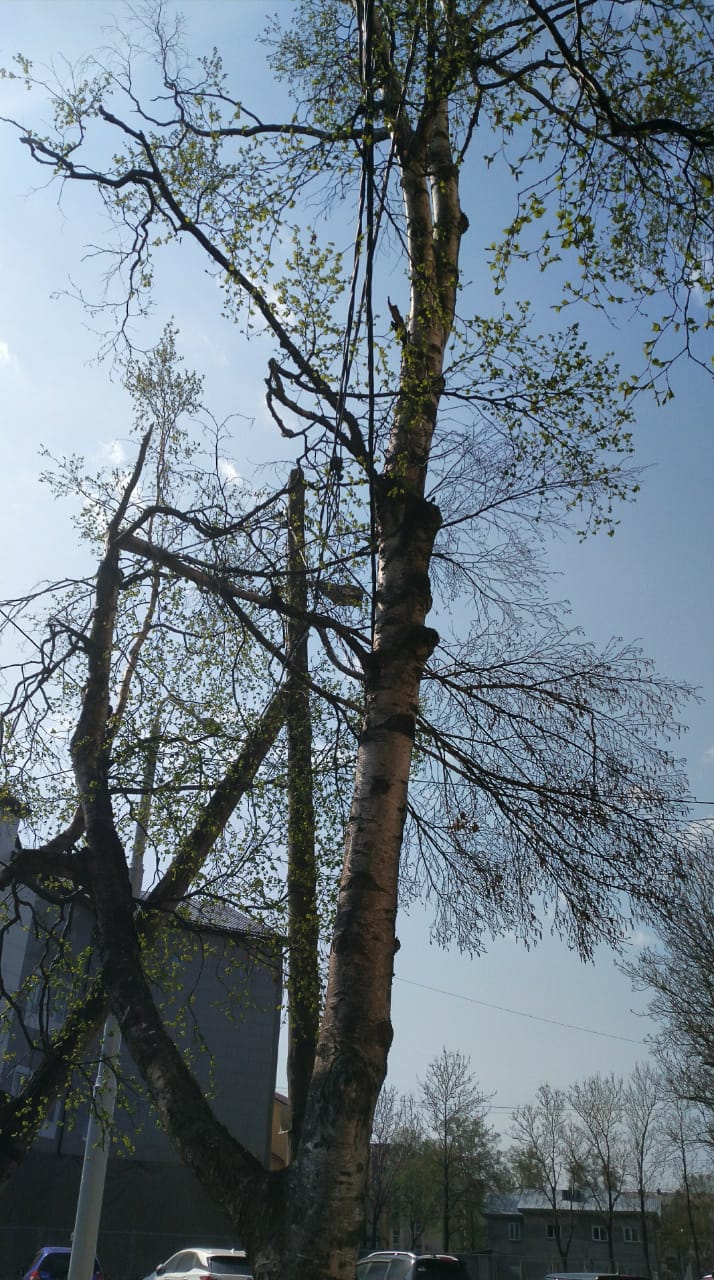 А над головами прохожих живописно и по-современному раскинул свои фазы силовой кабель, живущий на дереве, как тот сказочный персонаж Астрид Линдгрен, много лет.