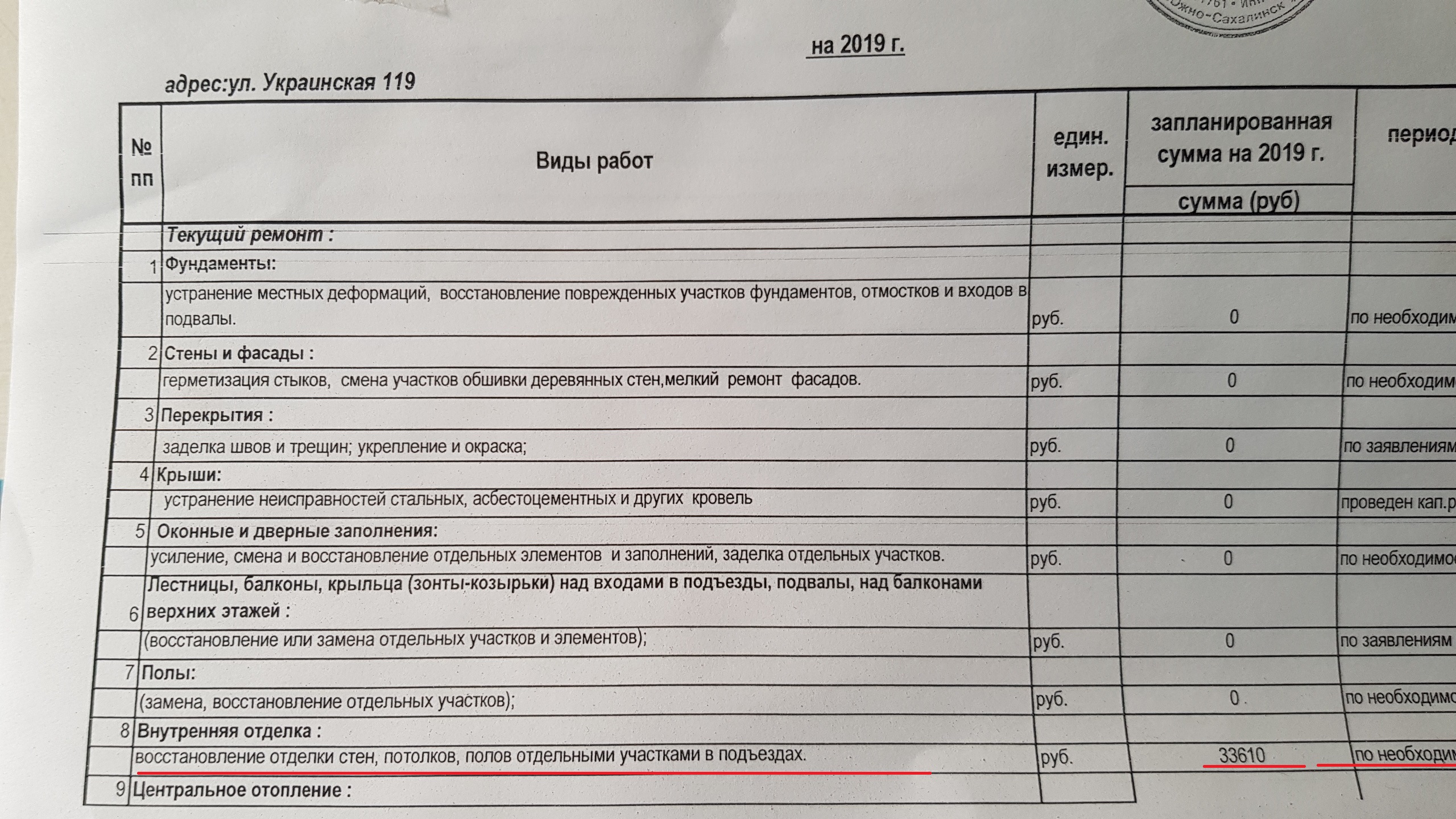 На восстановление отделки стен подъездов УК якобы планирует, в 2019 году, истратить чуть более 33 тысяч рублей с одной стороны но, сегодня отказывается это делать в указанные ранее сроки, по причине нехватки денег. Хотя, каждая квартира ежемесячно и исправно перечисляет “магистрам” ЖКХ ориентировочно одну тысячу рублей в среднем, в зависимости от жилой площади.