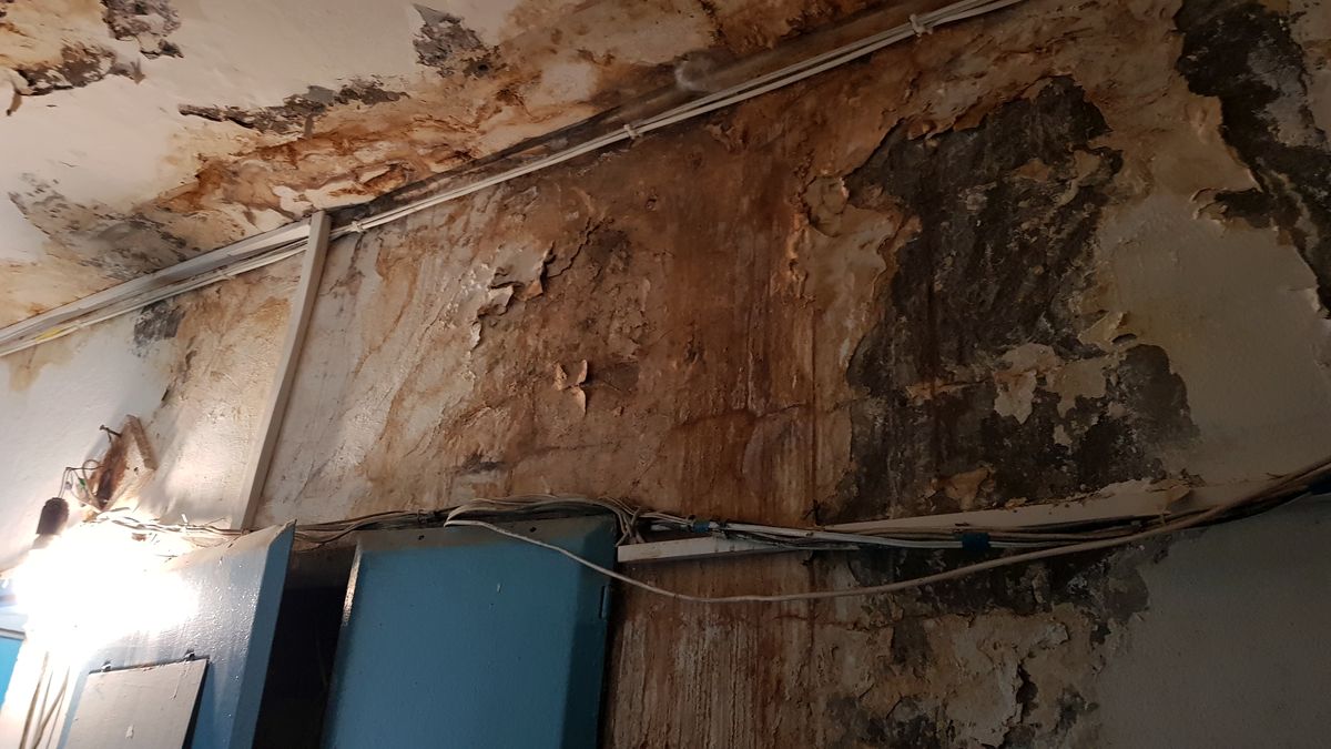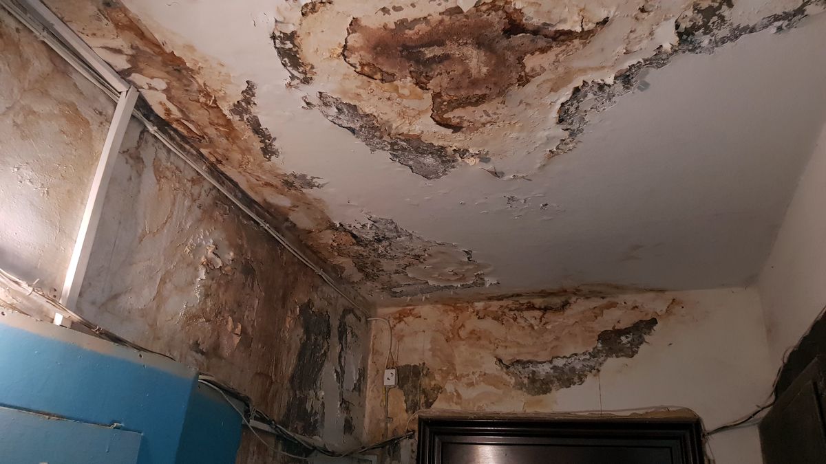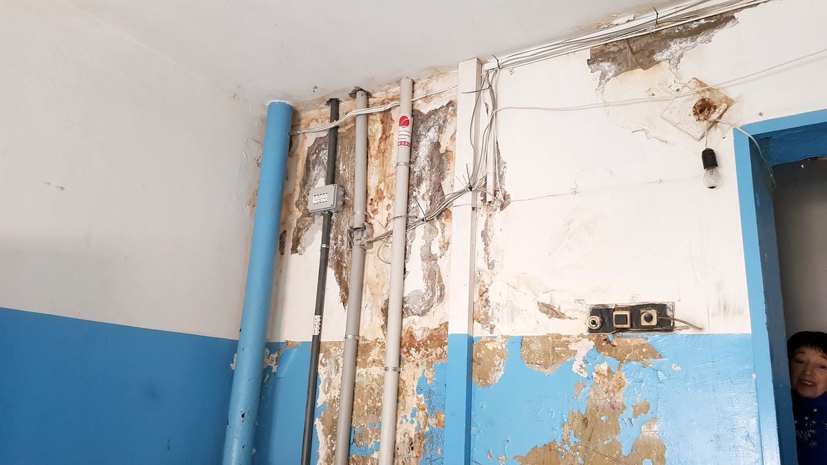Дом по улице Украинская 119 в областном центре считается уже пожилым, этот проект возводили в Южно-Сахалинске еще в советские годы. Стыки между панелями и их утепление, с возрастом, разрушились. Стены пришлось утеплять накладными, деревянными щитами, которые портят вид этого дома. Благо, тот находится вдали от общепринятых туристических маршрутов. Крыша, со временем, дала течь, и потоки дождевой воды регулярно омывали внутреннее пространство многоквартирного дома.
