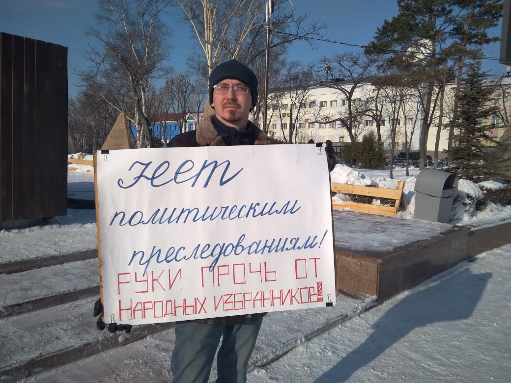 В областном центре прошел одиночный пикет против политических преследований народных избранников, организованный южносахалинским отделением КПРФ.