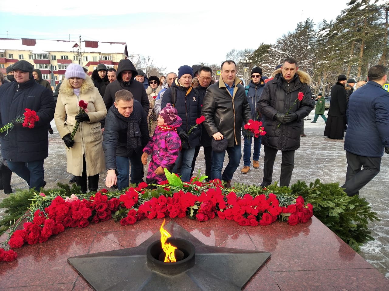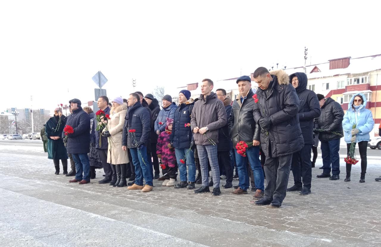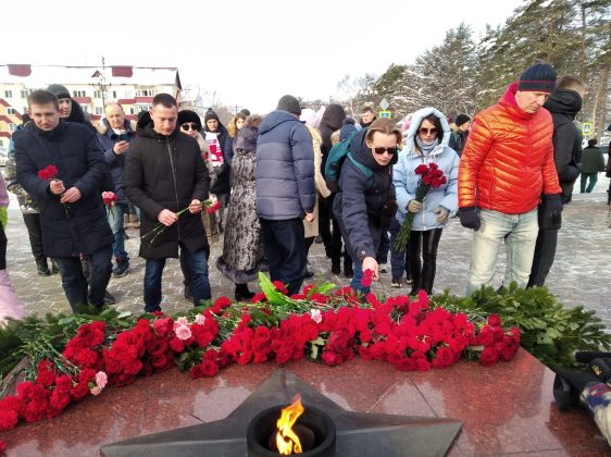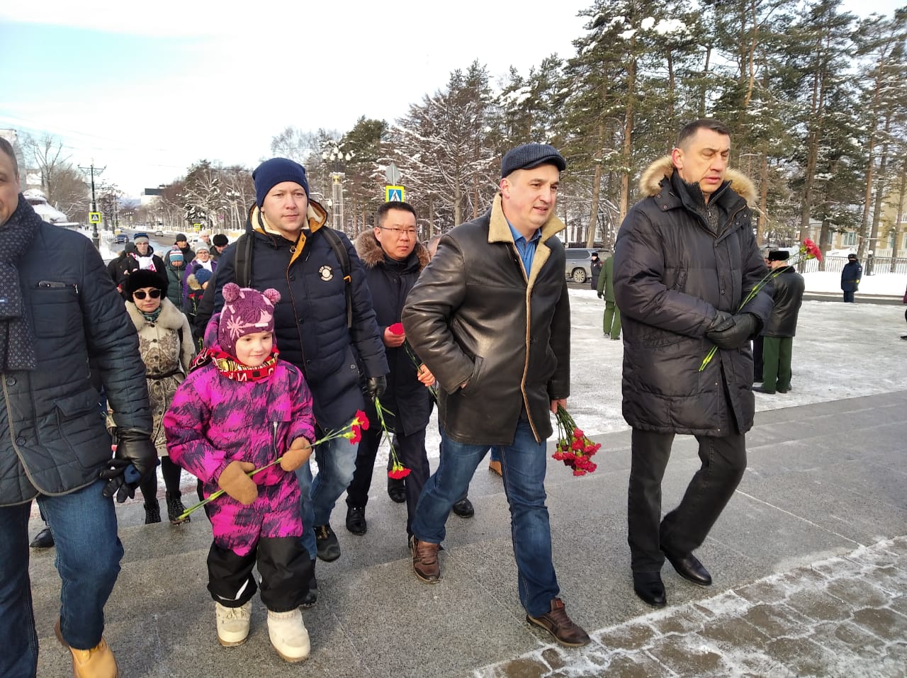 В г. Южно-Сахалинске коммунисты и комсомольцы города во главе с секретарем обкома Вячеславом Ким и первым секретарем Южно-Сахалинского горкома КПРФ Станиславом Кузнецовым возложили цветы к мемориальному комплексу на площади Славы.