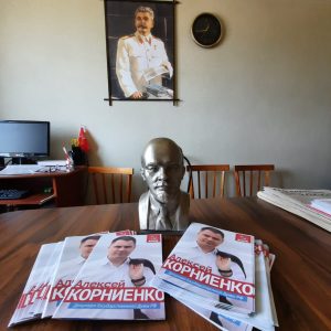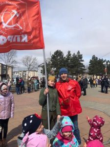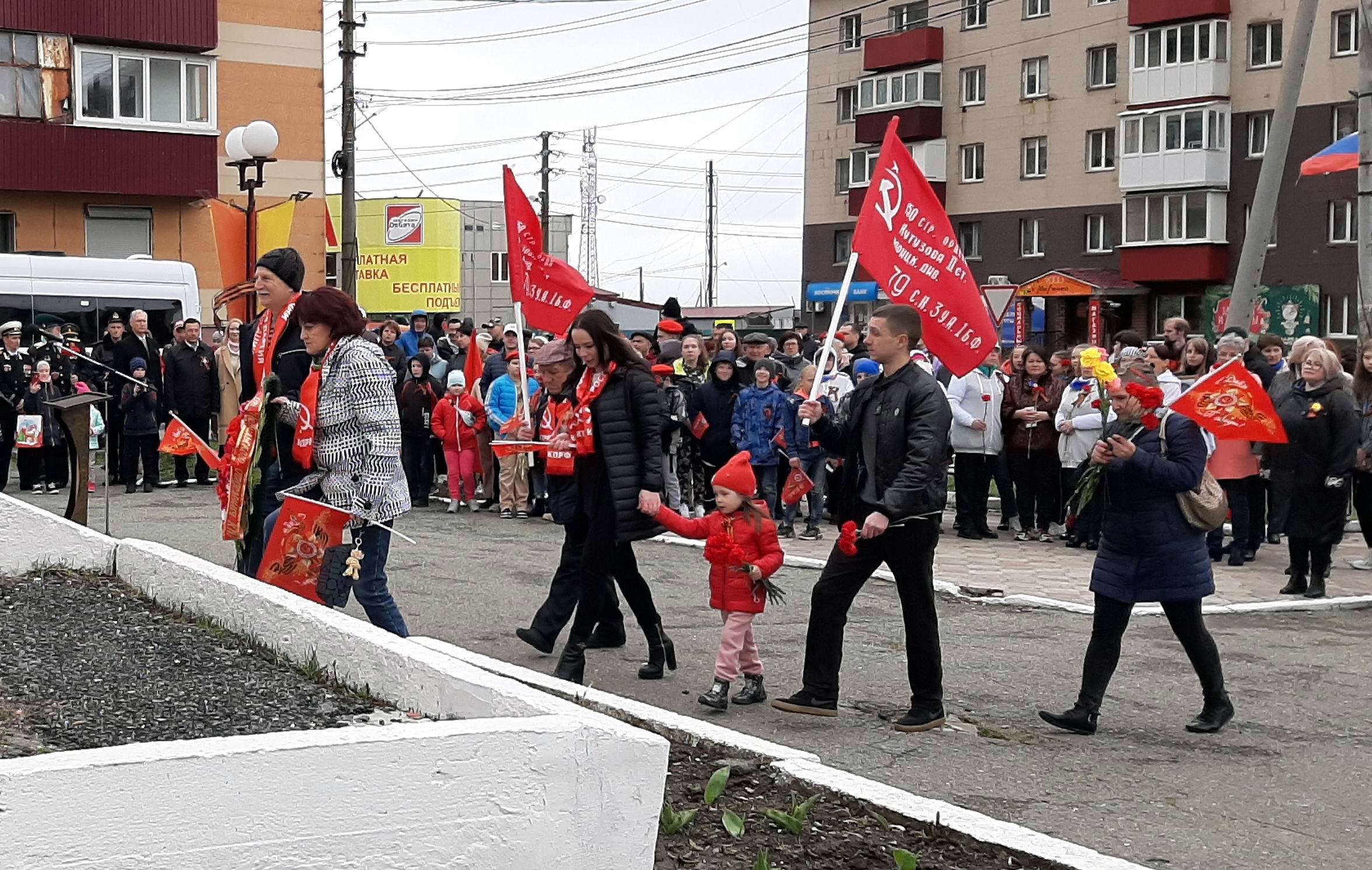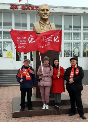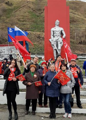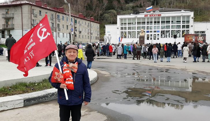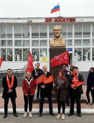 Александровск-Сахалинские коммунисты приняли участие в праздничном митинге. Во время раздачи агитационного материала получили в подарок бюст В.И.Ленина.