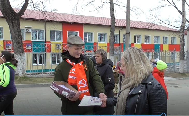 В г. Макарове, коммунисты, во время городских мероприятий, посвящённых Дню Победы поздравляли жителей города с праздником и распространяли агитационные материалы.