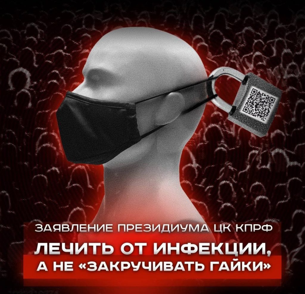 КПРФ заявляет, что только лишь насильственными ограничительными мерами пандемию не остановить. Принудительная вакцинация недопустима! Многие боятся вакцинироваться потому, что не верят власти. И это недоверие лишь усиливается, поскольку правящие круги избрали тактику угроз и репрессий вместо кропотливой разъяснительной работы. Уже сейчас людей, не имеющих сертификатов о вакцинировании, не принимают на работу, изгоняют с рабочих мест, лишают элементарных гражданских прав. Это уже борьба не с эпидемией, а с гражданами.